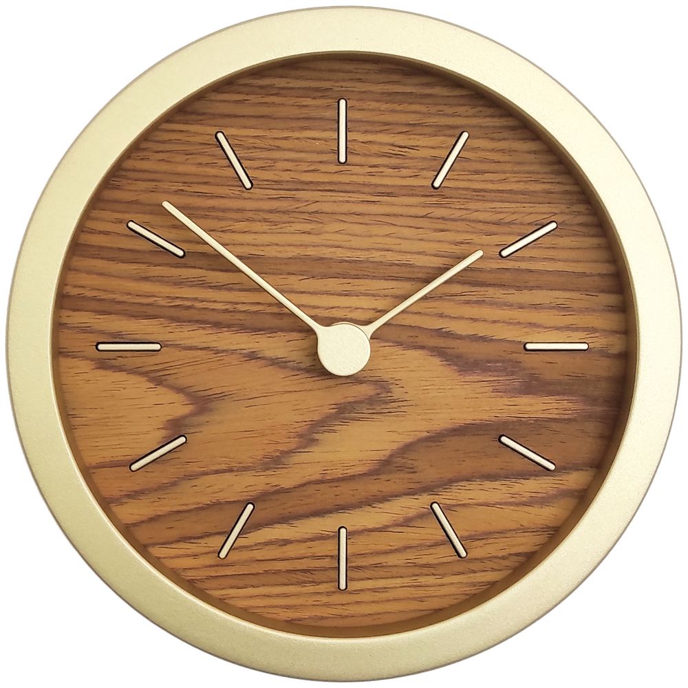Гармоничное сочетание натурального шпона теплого оттенка и приглушенного золотистого обрамления — в универсальных часах Gracie. Часы можно повесить на стену или разместить их на столе или полке — для этого в коплект к циферблату идет специальная подставка.