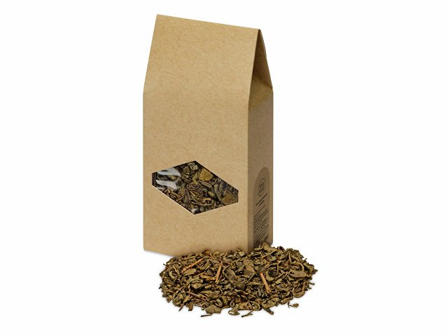 Чай зеленый байховый. Классический зеленый чай с терпким вкусом и насыщенным ароматом. Чай упакован в глянцевый пакет и крафт - коробку с широкой возможностью персонализации. Отличный подарок для ценителей зеленого чая.
