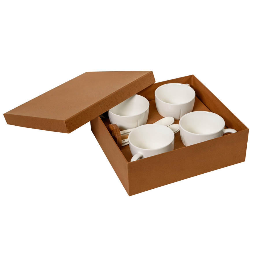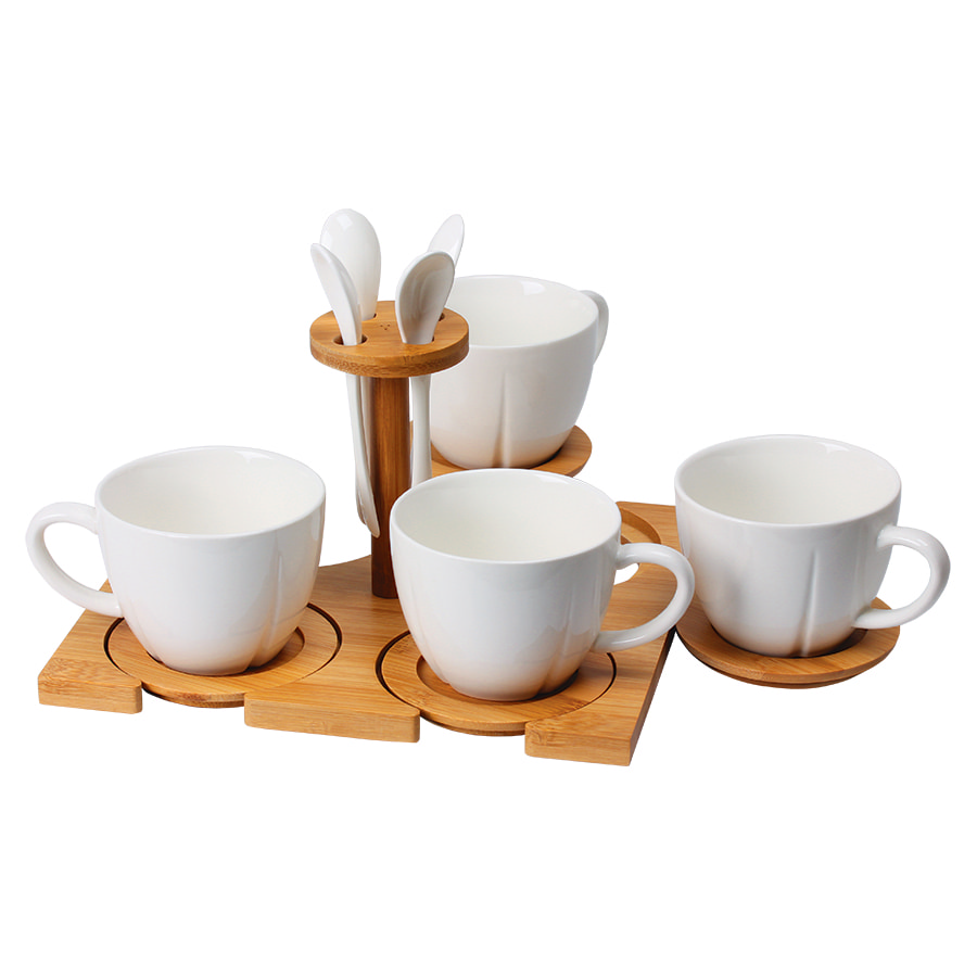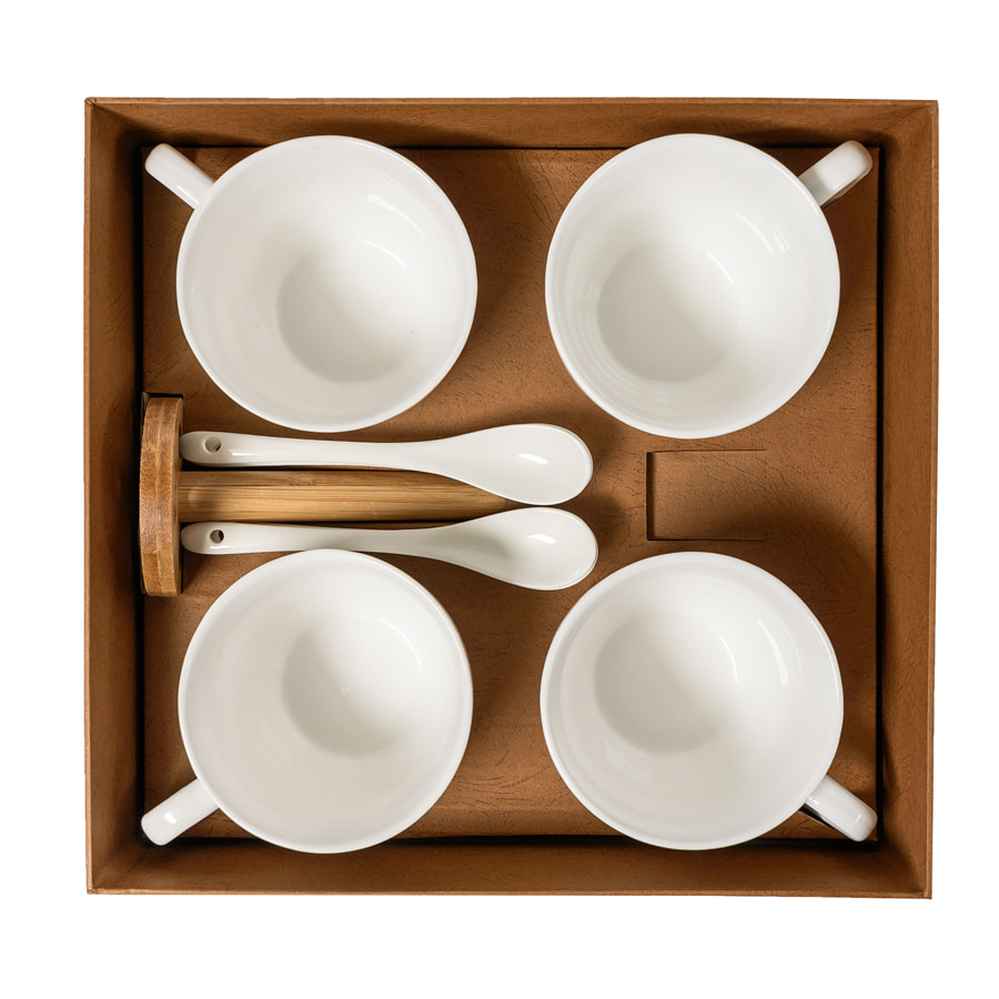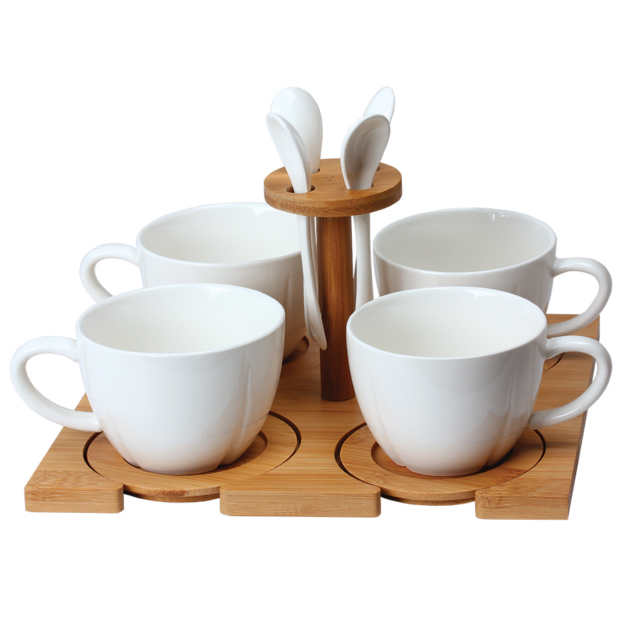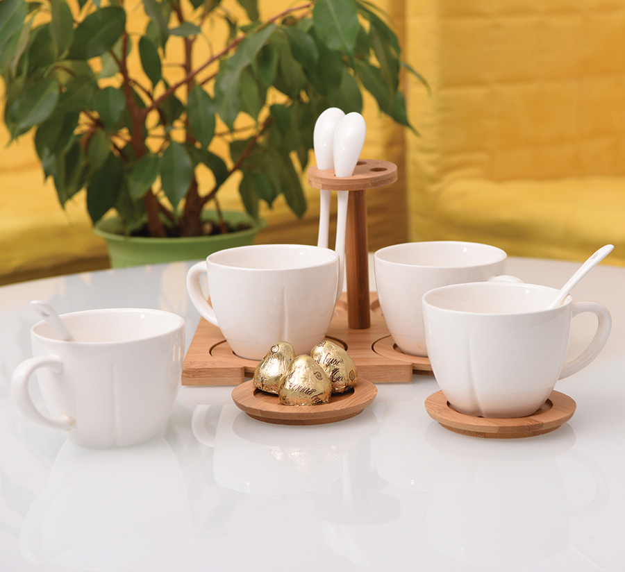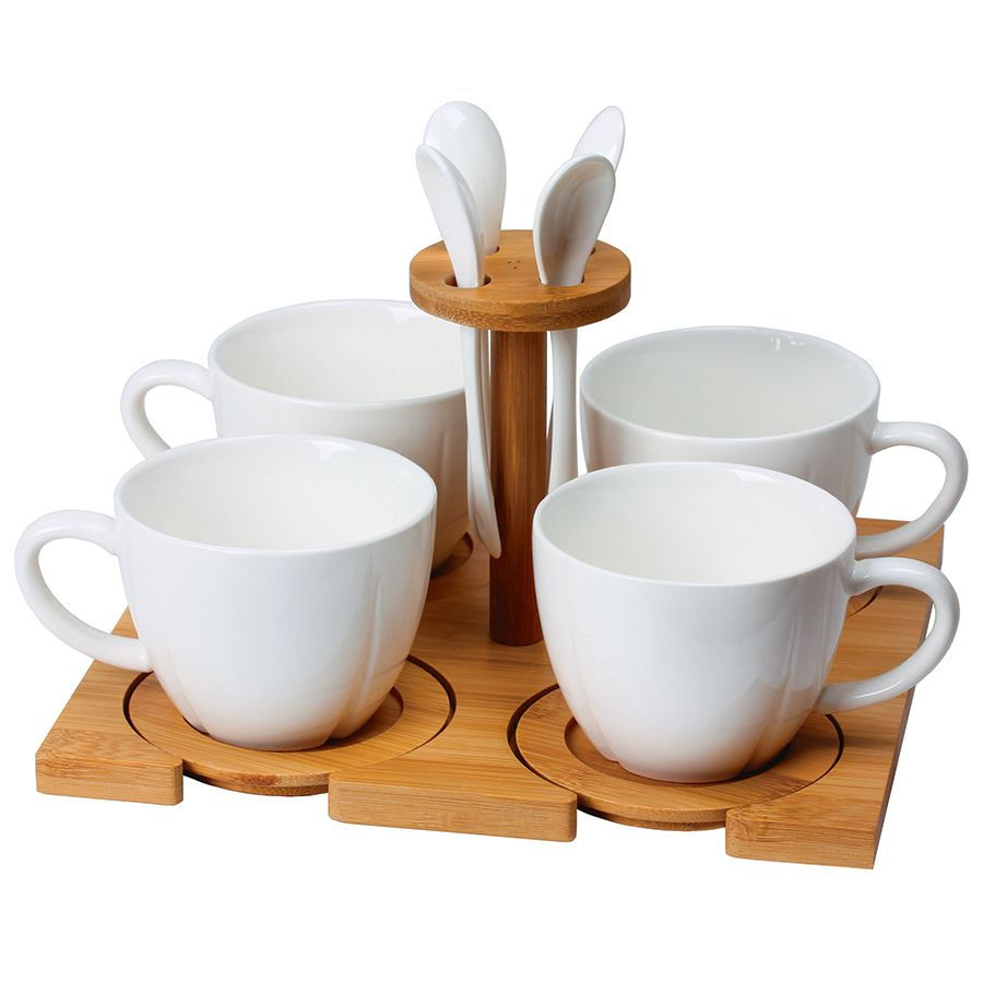 Чайная пара с ложкой (4шт) на подставке "Ксю" в упаковке, 200 мл, фарфор