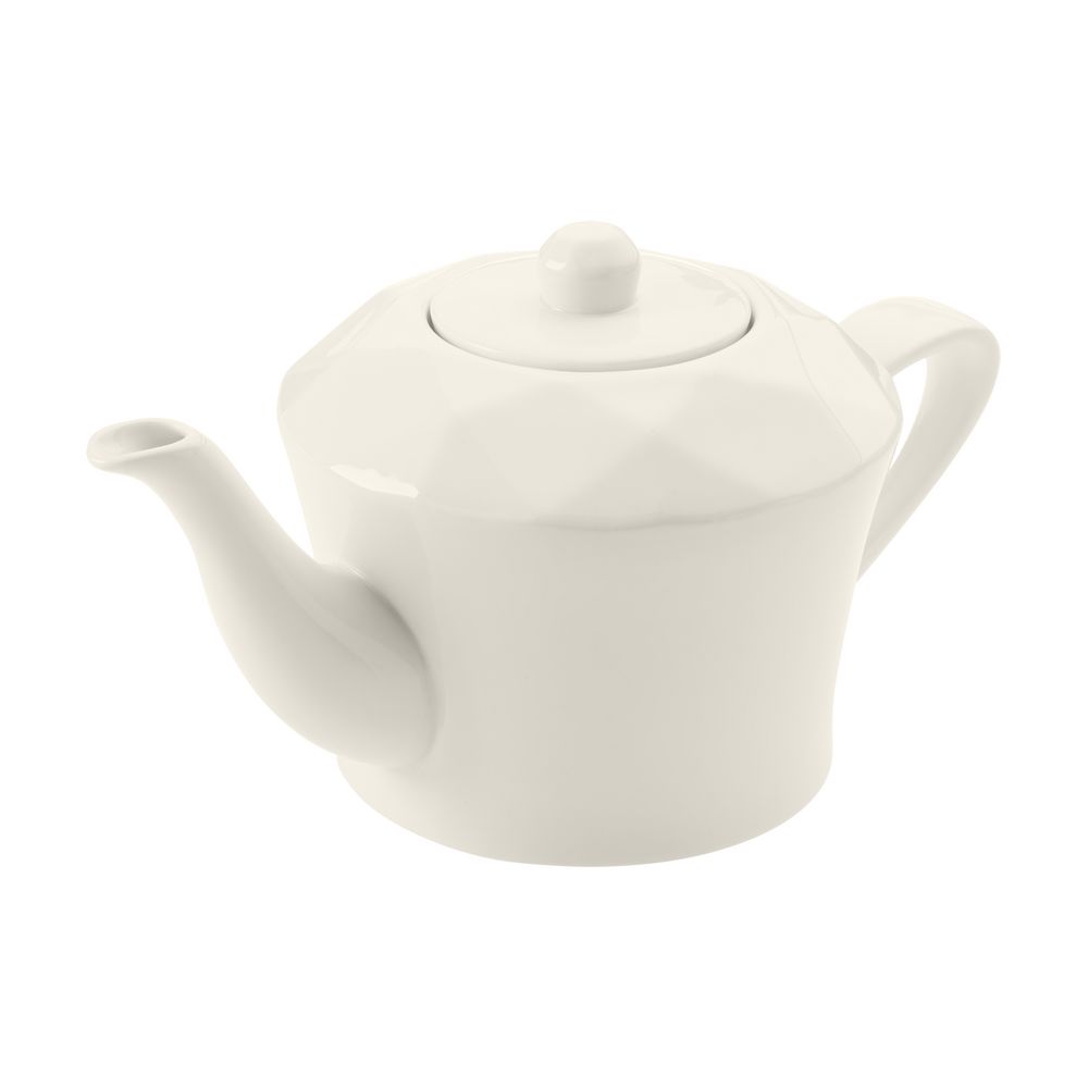 Линейка столовой посуды — настоящий бриллиант коллекции Altavolo. Структура и пропорции граней чайника в точности повторяют верхнюю часть бриллианта классической огранки — корону. Присмотритесь — и вы увидите, как играет свет на молочно-белом фарфоре.Емкость 600 мл.