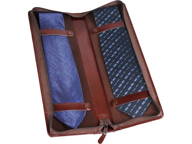 Компактный чехол для хранения галстуков оснащен двумя креплениями. Чехол выполнен из натуральной кожи коричневого оттенка. Благодаря чехлу аккуратно хранить и брать с собой галстуки в командировку стало еще удобнее. Тиснение (Блинт) на данный товар осуществляется бесплатно. Оплачивается только настройка оборудования в размере 6200 рублей на весь тираж.