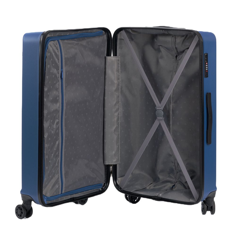 - Чемодан с 2 отделениями: одно из них с фиксирующими ремнями, второе — с разделителем и карманом-органайзер на молнии