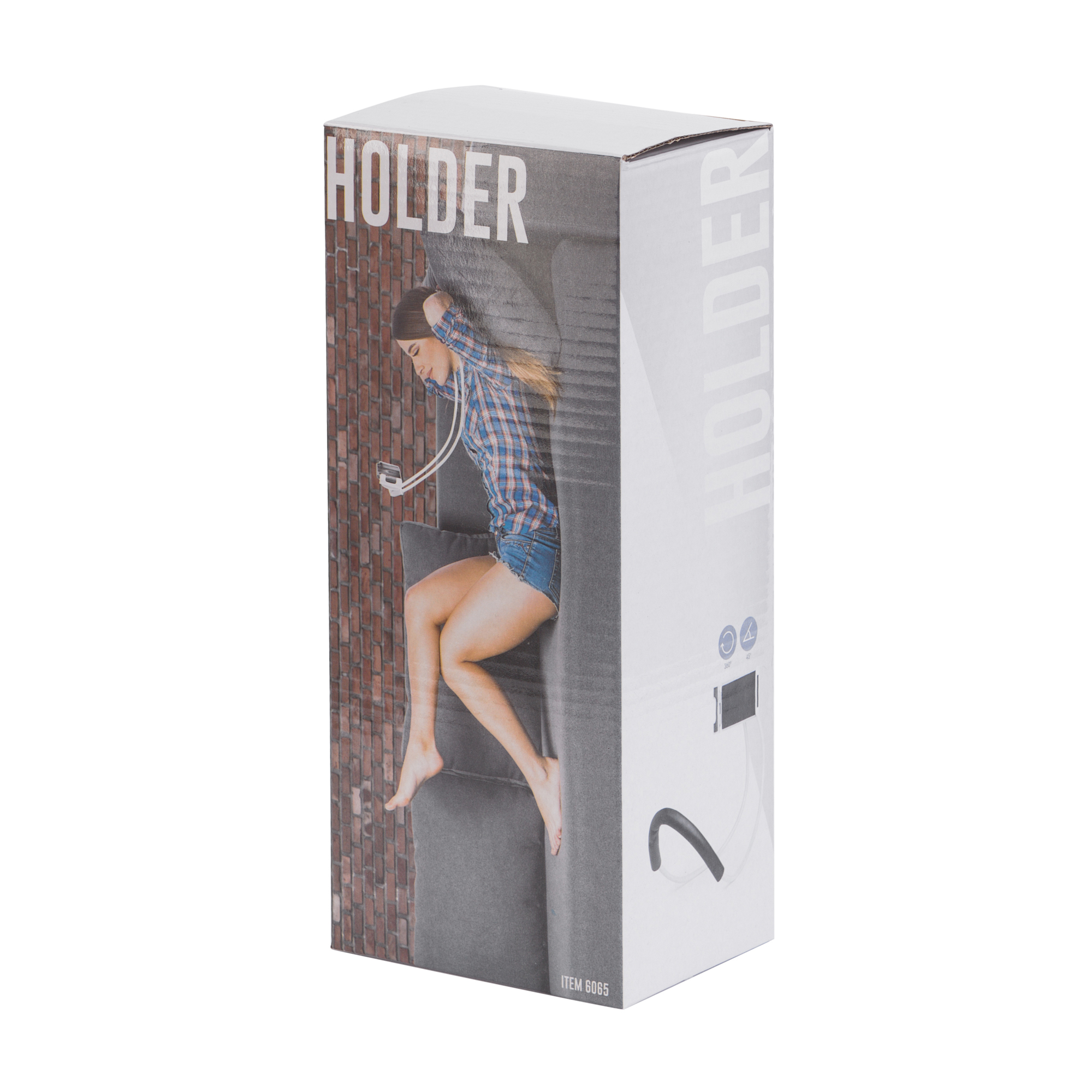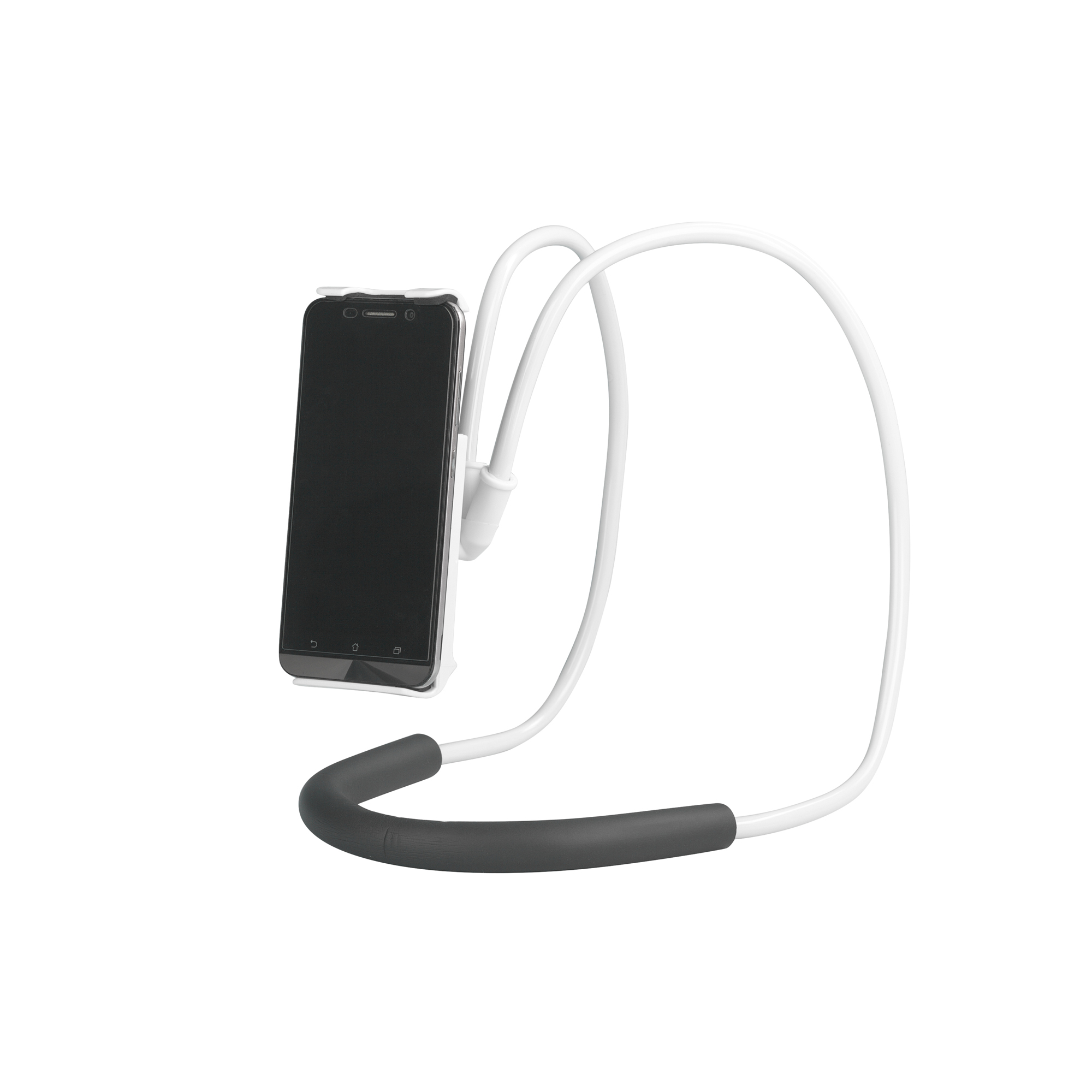 Универсальный держатель для мобильных устройств. Гибкая конструкция позволяет задать нужную форму и использовать аксессуар как настольную подставку. Мягкая нескользящая вставка снижает нагрузку на шею.