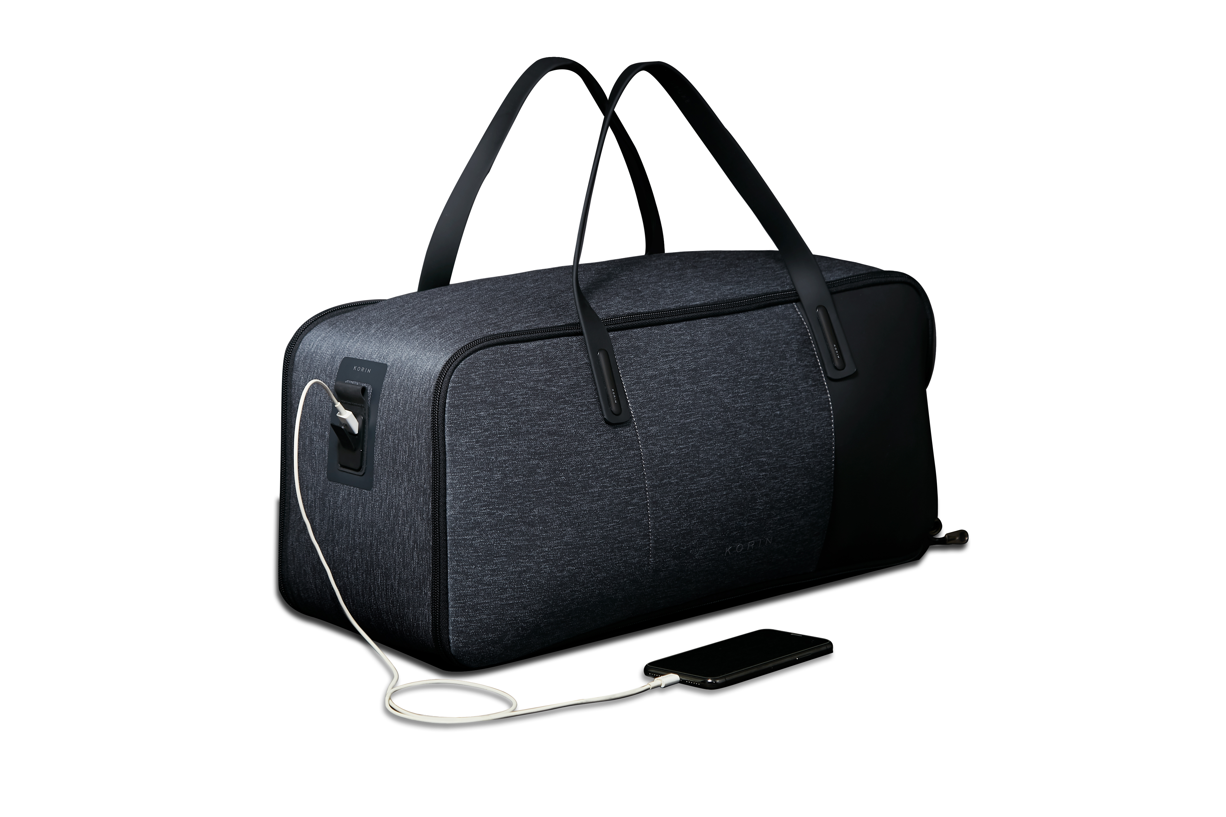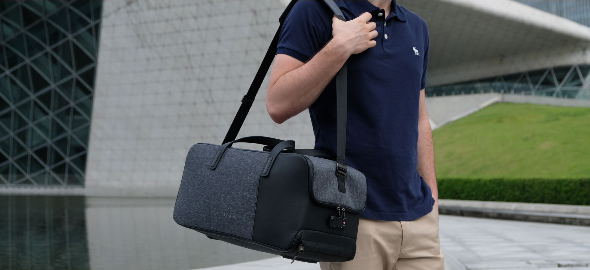 Дорожная сумка-трансформер FlexPack Go со съемным плечевым ремнем и прочными резиновыми ручками, обладатель премий Governor Cup Industrial Design Excellence Award, Upstyle Award 2018. Сделана из прочного устойчивого к порезам и трению водоотталкивающего многослойного полиэстера, не требующего специального ухода. Размер сумки 53х23 см, высота 26 см. Удобным дополнением служит возможность зарядки смартфона, для этого из внутреннего кармана на молнии 13х18 см для powerbank выведен USB-кабель, который соединен с портом на внешней стороне сумки. Внутри сумки есть 2 кармана 17х18 см, один 13х16,5 см и еще карман на клапане сумки 16,5х18,5 см. Дополнительно в сумке предусмотрены эластичные фиксаторы для одежды или других вещей с удобными креплениями в различных положениях. В комплект входят укладка на молнии для футболок и других мелких предметов одежды 20х18х11 см и укладка 23,5х19х8,5 см, которую можно зафиксировать на липучке внутри сумки, тем самым превратив ее в easy acsess карман, который можно разделить на 2 отделения откидывающейся перегородкой. Застежки молнии сумки блокируются на кодовый замок TSA007 с функцией таможенного досмотра. Особенностью сумки является возможность трансформации в плоскую укладку, которую легко хранить и брать с собой. Сумка оснащена стальным тросом, которым можно обхватить неподвижный предмет и затем зафиксировать бегунком молнии в кодовом замке. Дополнительно на боку сумки есть открытый карман 15х20 см с молнией на его дне, которая позволяет превратить карман в лямку для фиксации сумки на ручке чемодана. Вес сумки 1030 гр, объем 30 л. Сумка упакована в черную подарочную коробку размером 35х25х11 см.