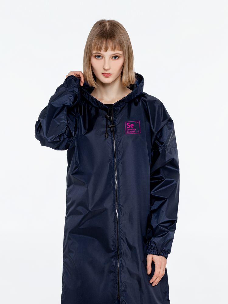 Плащ-дождевик из ткани таффета на молнии с капюшоном. Складывается в мешочек — удобно брать с собой.