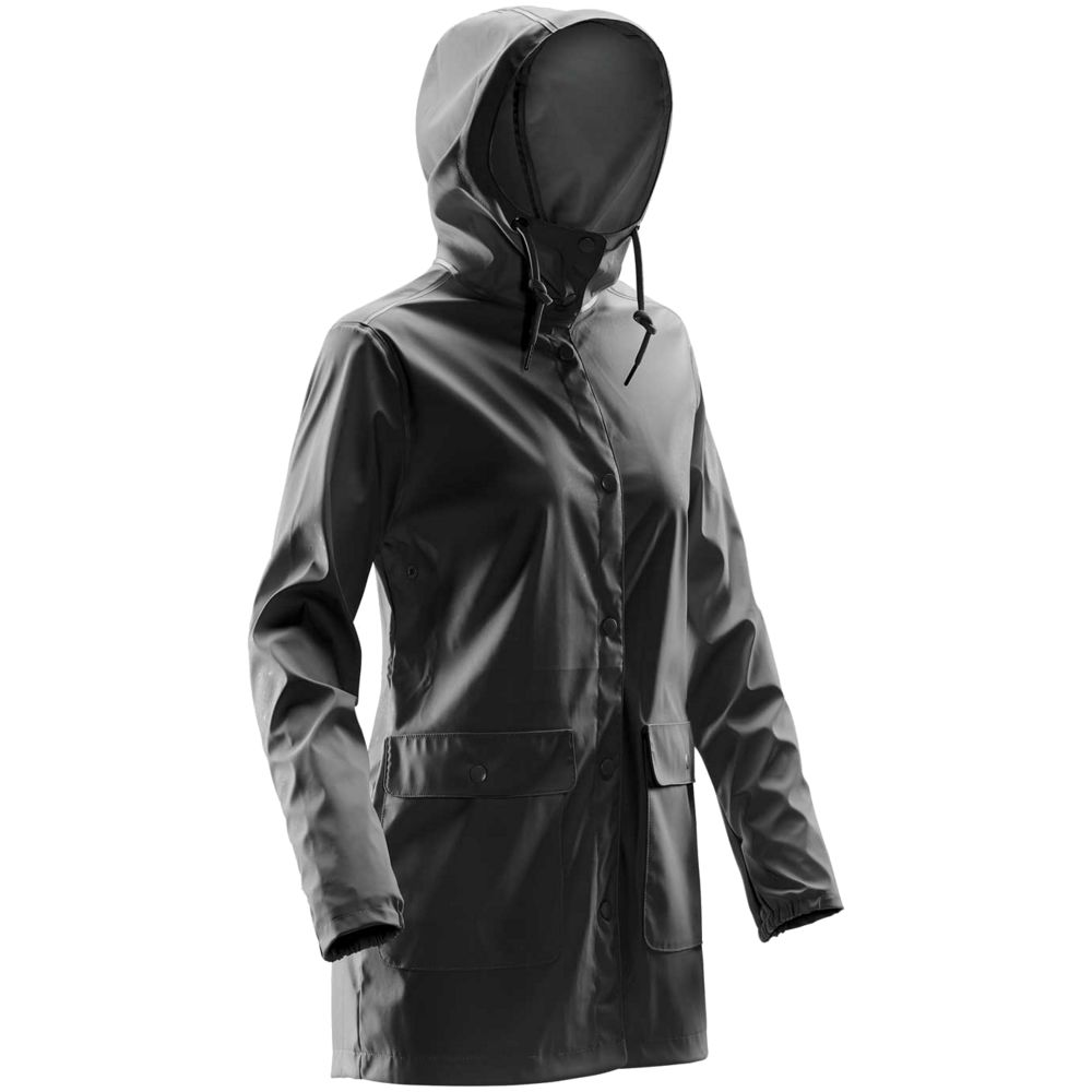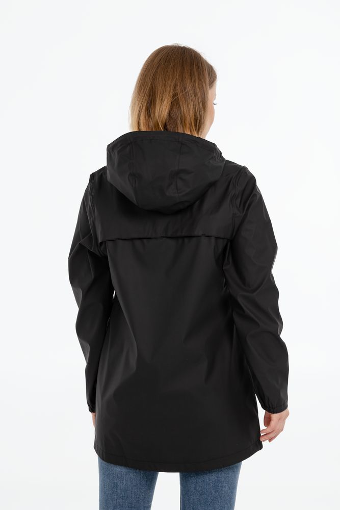 Стильный и практичный женский дождевик на кнопках из матового водонепроницаемого и ветрозащитного материала. Благодаря сварке ультразвуком швы абсолютно водостойкие. Карманы защищены от дождя накладными клапанами.