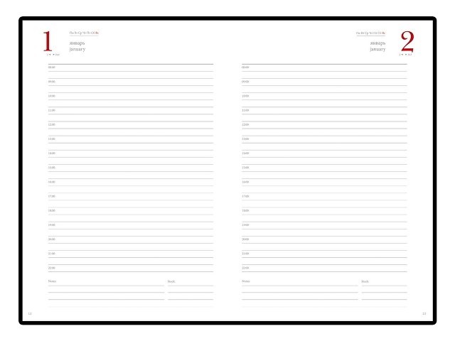 В ежедневнике есть полезная справочная информация и телефонная книга, а также страницы для записи идей, мыслей и составления рабочих планов. Есть перфорация (нижние уголки отрывные). Для изготовления страниц используется качественный бежевый офсет повышенной плотности (80 г/кв м), которая производится японской фирмой Daiwa и подходит для всех видов чернил. Цветная подробная карта России и мира в сложенном виде вставлена в конец блока.