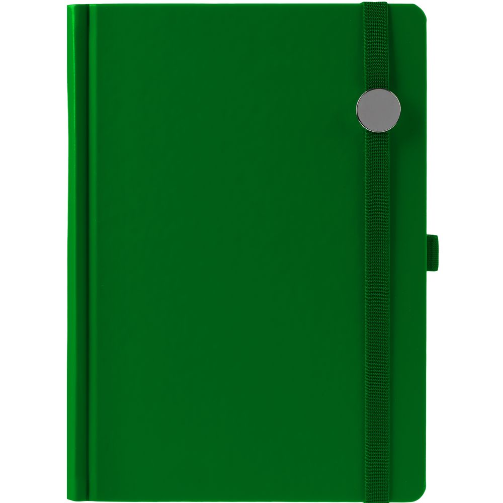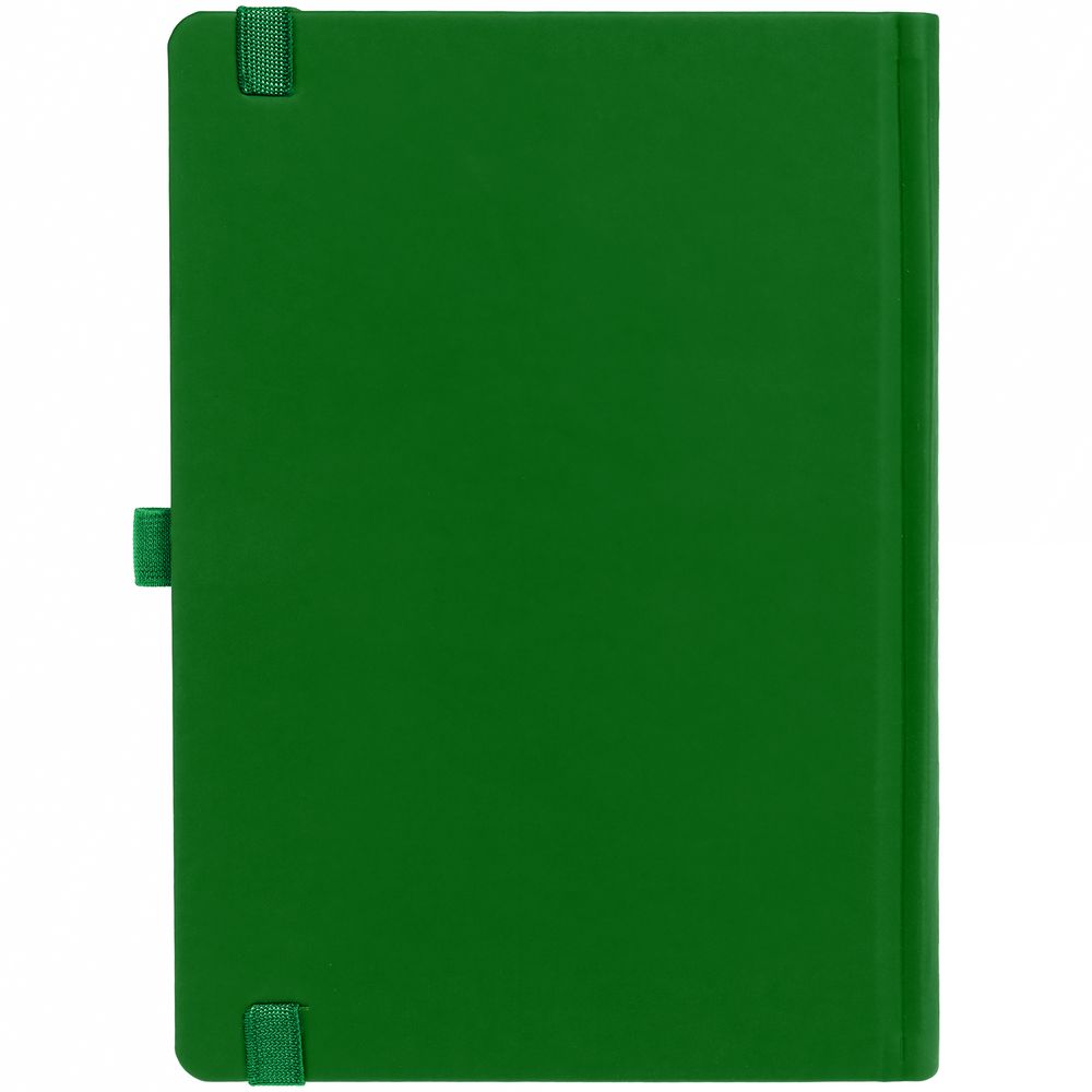 Ежедневник с твердой обложкой без поролона, выполнен из материала Soft Touch Ultra, зеленый FF, дополнен резинкой шириной 1 см, петлей-резинкой для ручки, капталом и ляссе ярко-зеленого цвета.