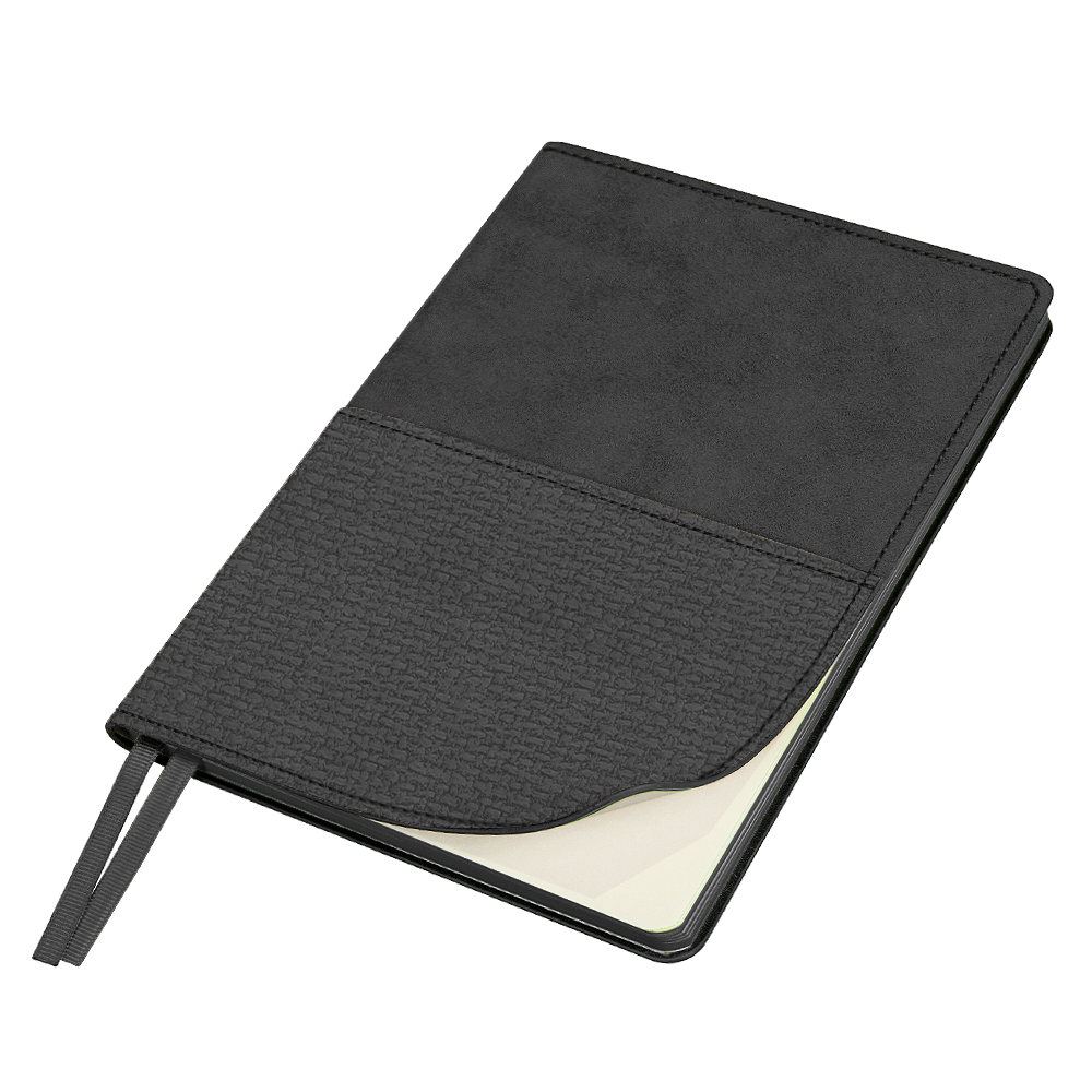 Ежедневник в гибкой обложке. Изготовлен из искусственной кожи в комбинации двух материалов: Nuba и Sand.