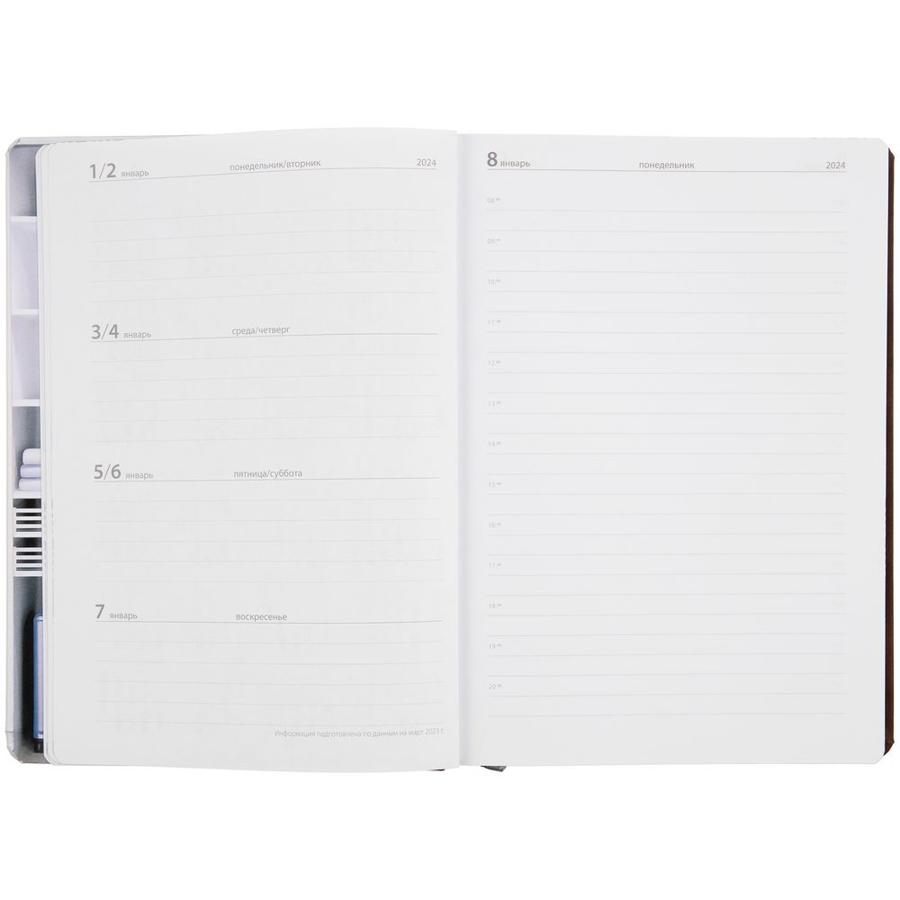 Ежедневник датированный с твердой обложкой, выполнен из переплетных материалов на полиуретановой основе из ассортимента ТМ Адъютант.