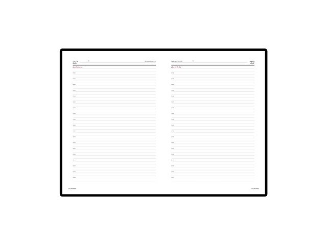 В ежедневнике Sidney Nebraska есть полезная справочная информация и телефонная книга на 18 листов, а также 272 страницы для записи идей, мыслей и составления рабочих планов. Специально для ежедневных офисных дел в ежедневнике используется качественная белая бумага плотностью 70 г/м². Разметка блока с указанием времени позволяет планировать дела с точностью до 1 часа.