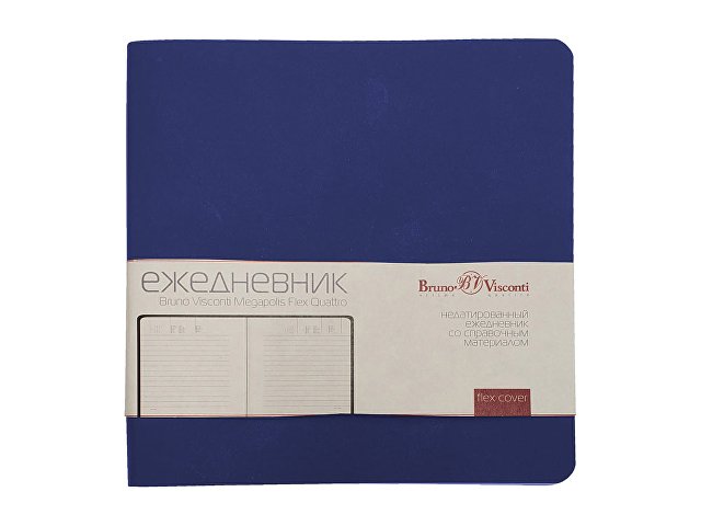 Оригинальный формат ежедневника Megapolis Flex Quattro никого не оставляет равнодушным. Большинство покупателей влюбляются в него с первого взгляда. Обложка выполнена из качественного, тактильно приятного искусственного материала, гибкая и не ломкая. Великолепная бежевая бумага плотностью 70 г/м и практичная линовка с расписанным временем для планирования дел. Этот ежедневник отлично поместится даже в маленькую сумку, а у всех, кто его увидит вызовет неподдельный восторг. Справочная информация на 19 страницах и телефонная книга на 28. Удобно, практично и, конечно же, стильно! Тиснение (Блинт) на данный товар осуществляется бесплатно. Оплачивается только настройка оборудования в размере 6200 рублей на весь тираж.