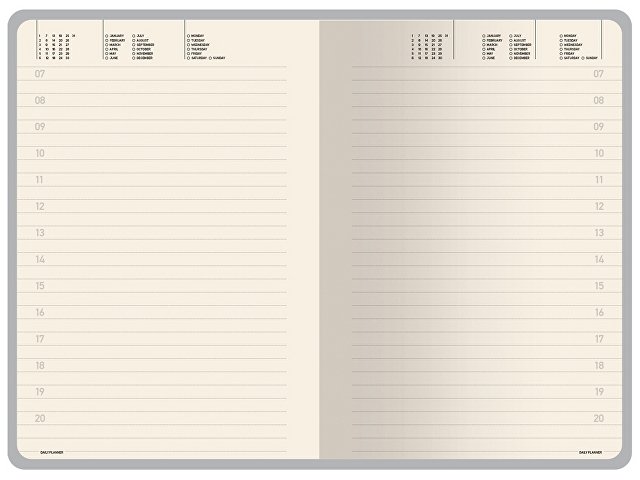 В ежедневнике Megapolis Flex есть полезная справочная информация и телефонная книга, а также страницы для записи идей, мыслей и составления рабочих планов. Для изготовления страниц используется качественный бежевый офсет повышенной плотности (70 г/кв м). Блок не привязан к конкретным датам – они указываются в выделенном поле вверху страницы. Тонированная бумага не дает глазам утомиться даже при длительной работе.