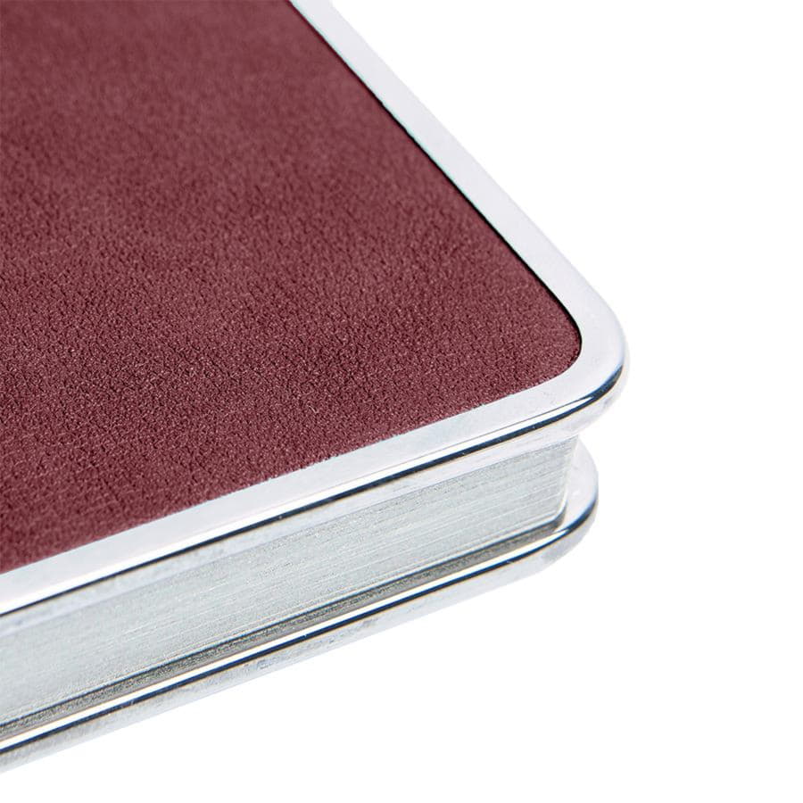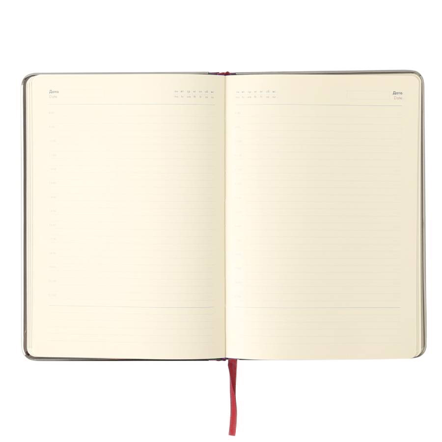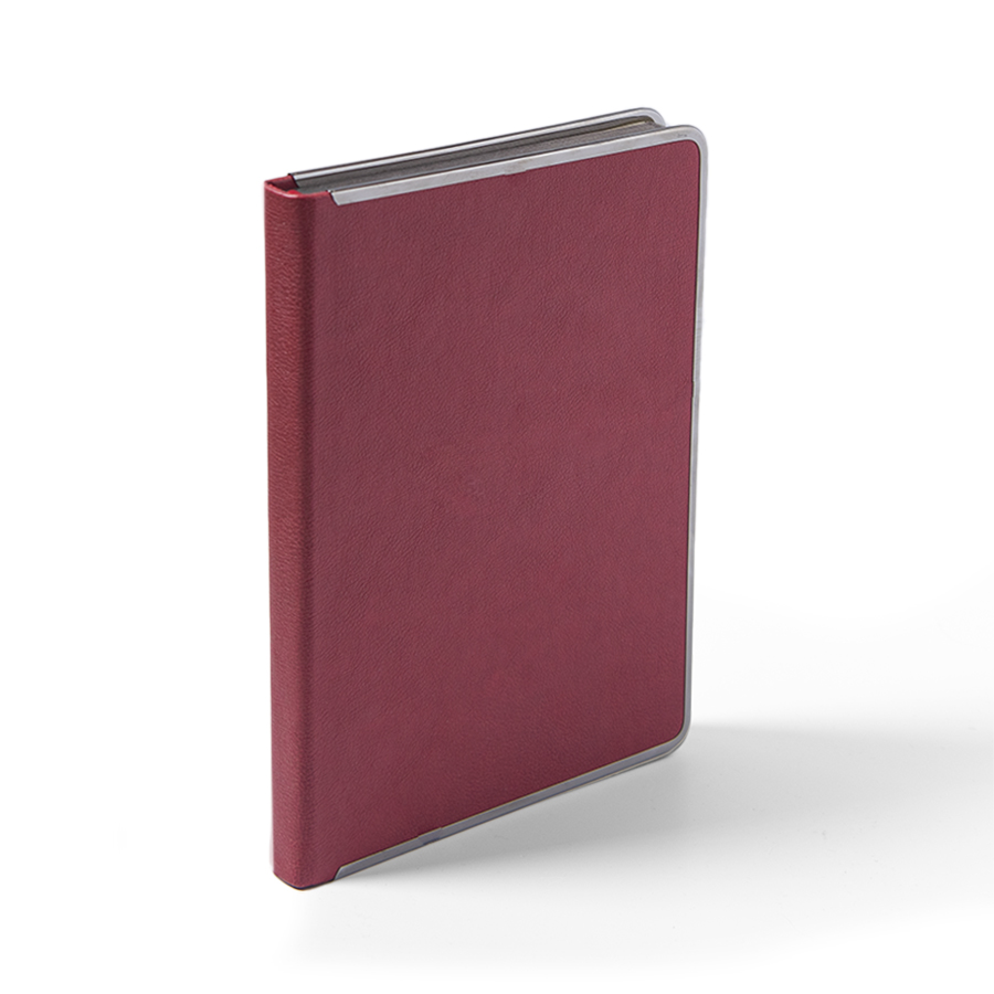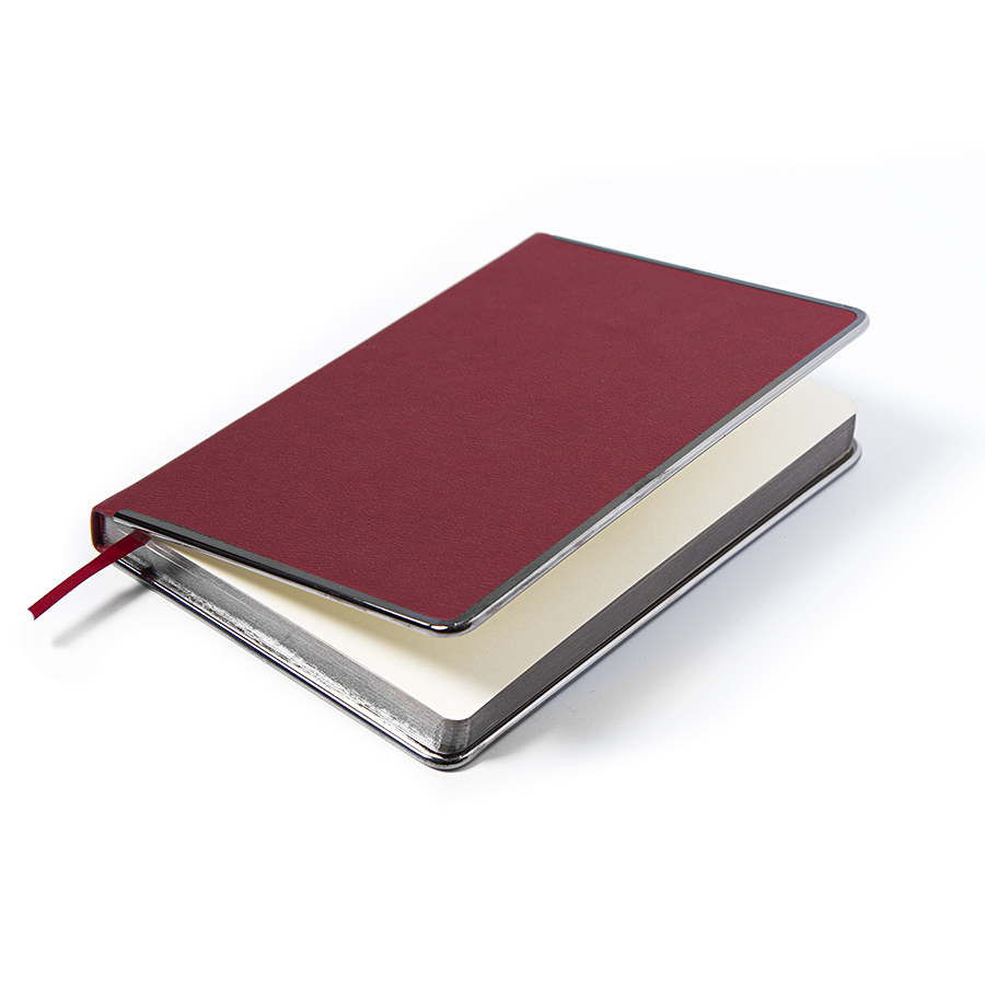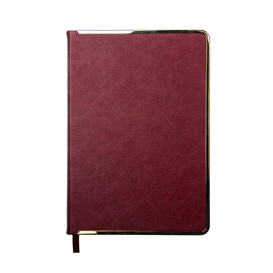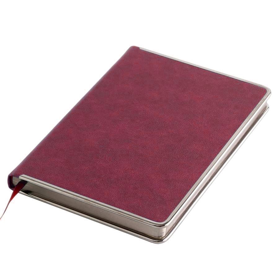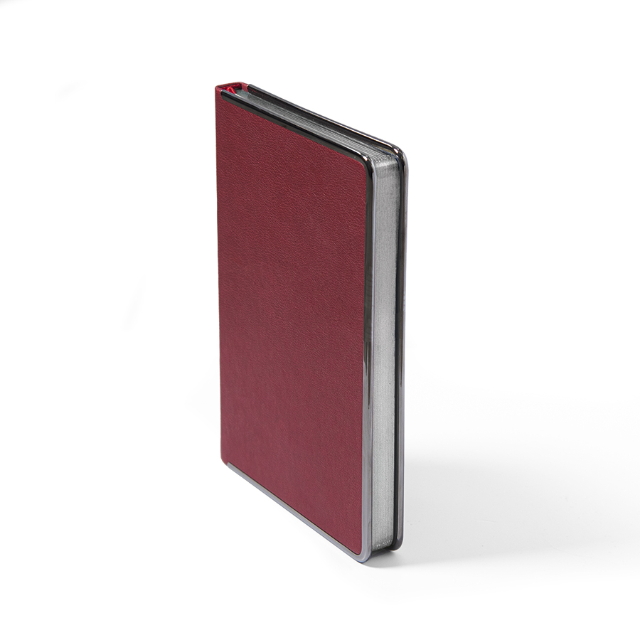 Цвет обложки, близкий к пантону 202 CРазмер 145*205 ммПереплет твердыйМеталлическая рамка по периметру, цвет gun metalОбложка термоактивный PUБлок недатированный, в линейкуСкругленные углы, двухцветная печатьБумага кремовая, плотность 70 г м2Форзац нахзац кремовые272 страницыОбрез в цвет металлической рамкиКаптал и ляссе в цвет обложкиУпаковка крафтовый сливбоксВ данный момент происходит смена справочной части блока. Внешний вид изделия остается без изменений.