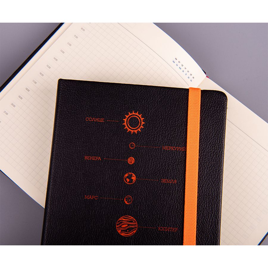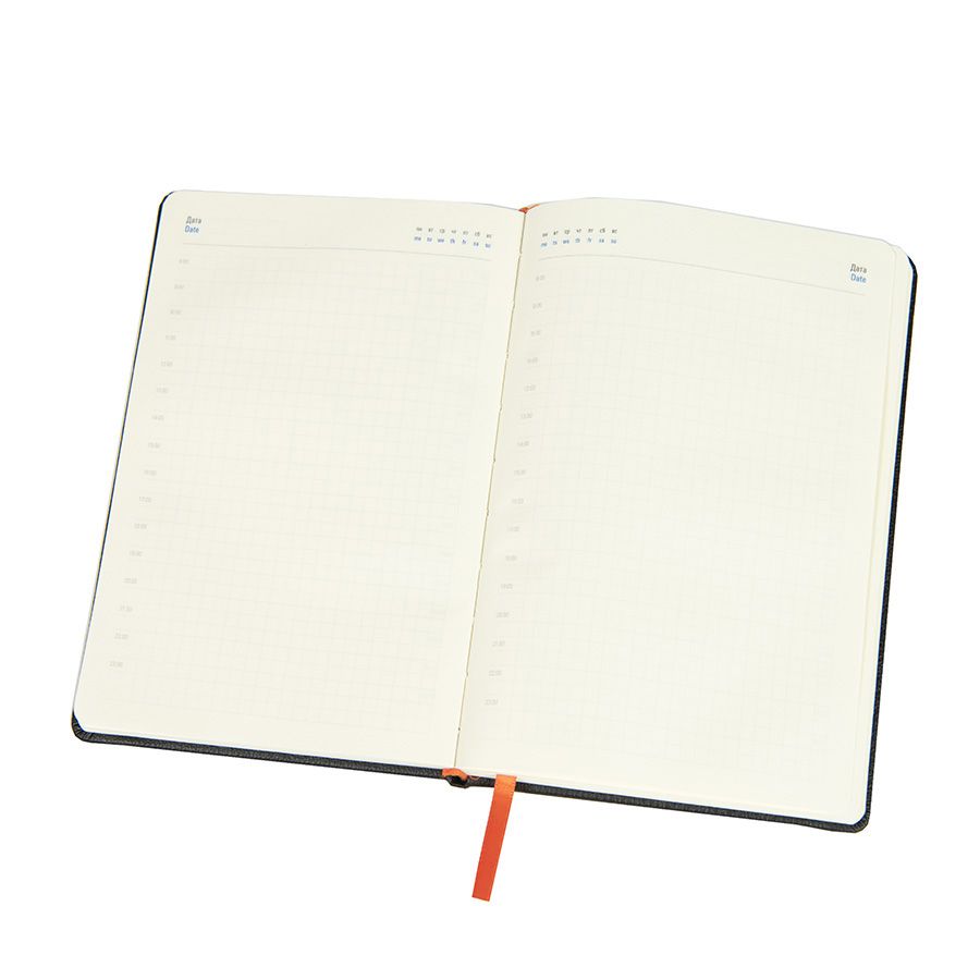 Цвет обложки черныйРазмер 145*205 мм, переплет твердыйОбложка PU Nappa Biпод цветную гравировкуБлок недатированный, в клеткуСкругленные углы, двухкрасочная печатьБумага кремовая, плотность 70г м2Форзац нахзац кремовые272 страницыРезинка, 10 ммЦвет резинки, близкий к пантону 805СЛяссе близкий к пантону 1665СУпаковка крафтовый сливбоксВ данный момент происходит смена справочной части блока. Внешний вид изделия остается без изменений.