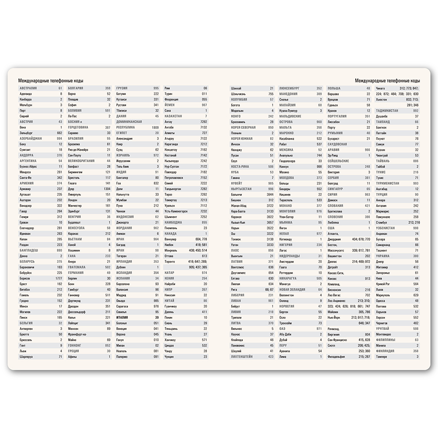 Цвет обложки, близкий к пантону BlackC Размер 140*200 мм Переплет мягкий Обложка термоактивный PU Velvet Блок недатированный, в клетку, скругленные углы Бумага кремовая, плотность 70 г м2 Форзац и нахцаз кремовые 256 страницы Упаковка крафтовый сливбоксВ данный момент происходит смена справочной части блока. Внешний вид изделия остается без изменений.