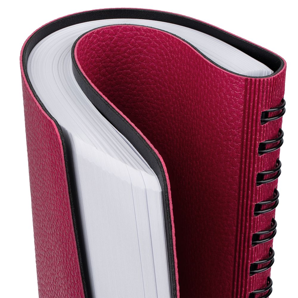 Ежедневник с гибкой обложкой, выполнен из материалов La Fite, малиновый LL и Waltz черный АА.