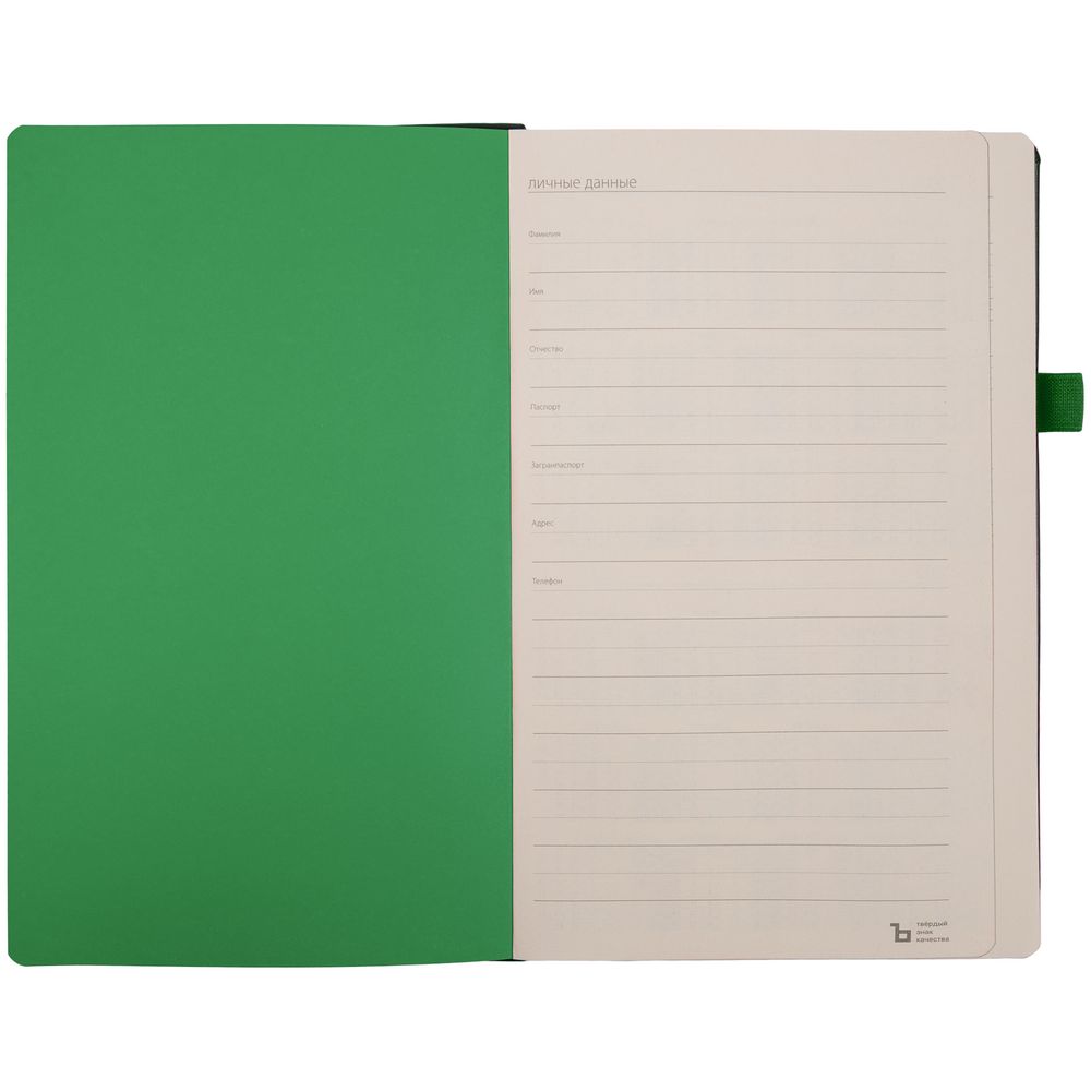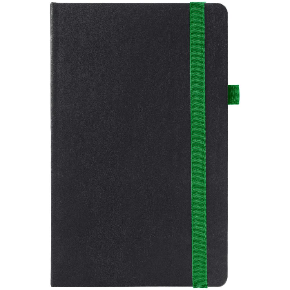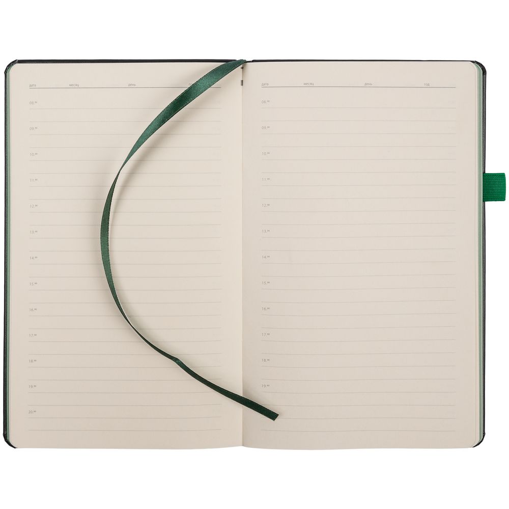 Ежедневник с твердой обложкой, выполнен из материала Waltz, черный АА, дополнен желтой резинкой и ляссе.