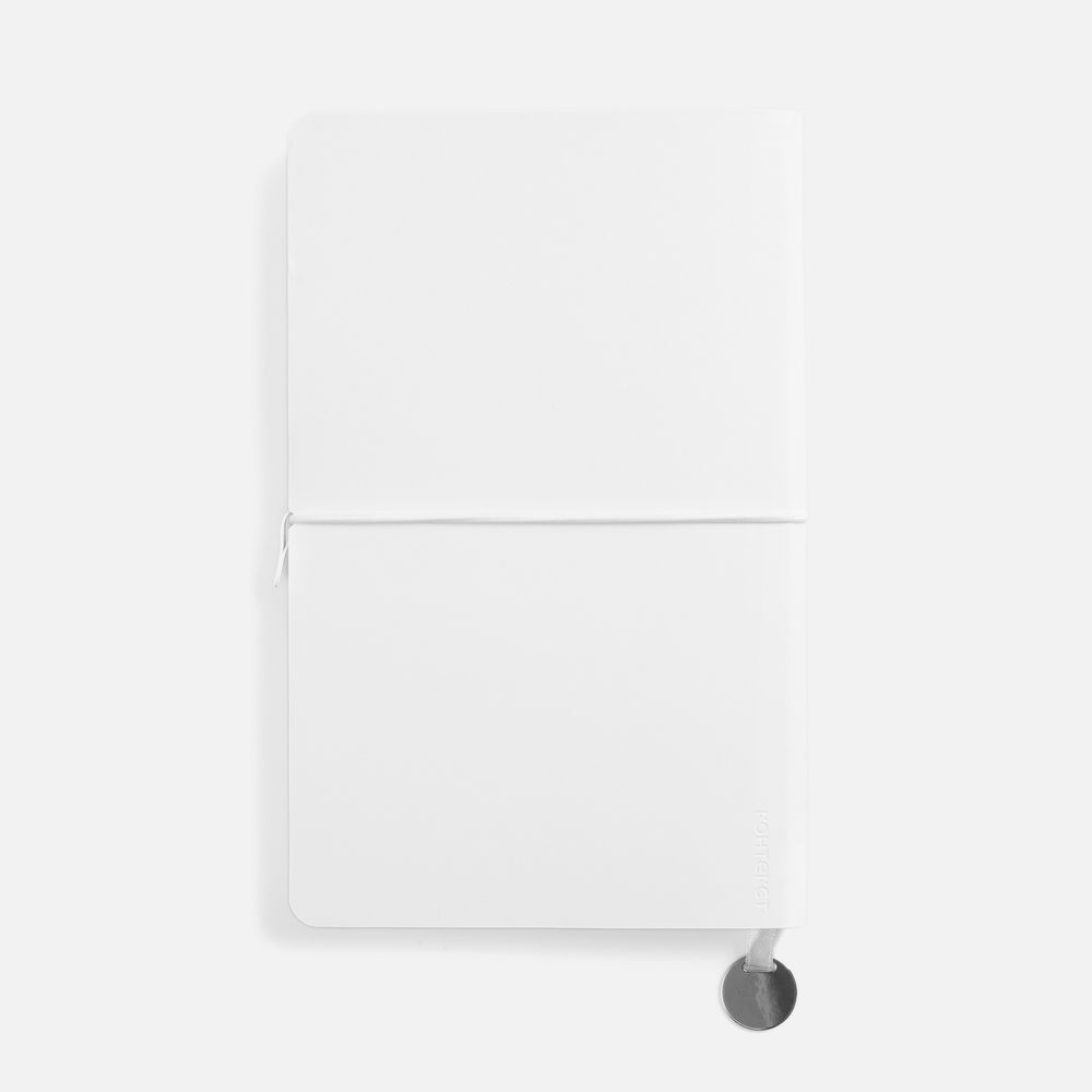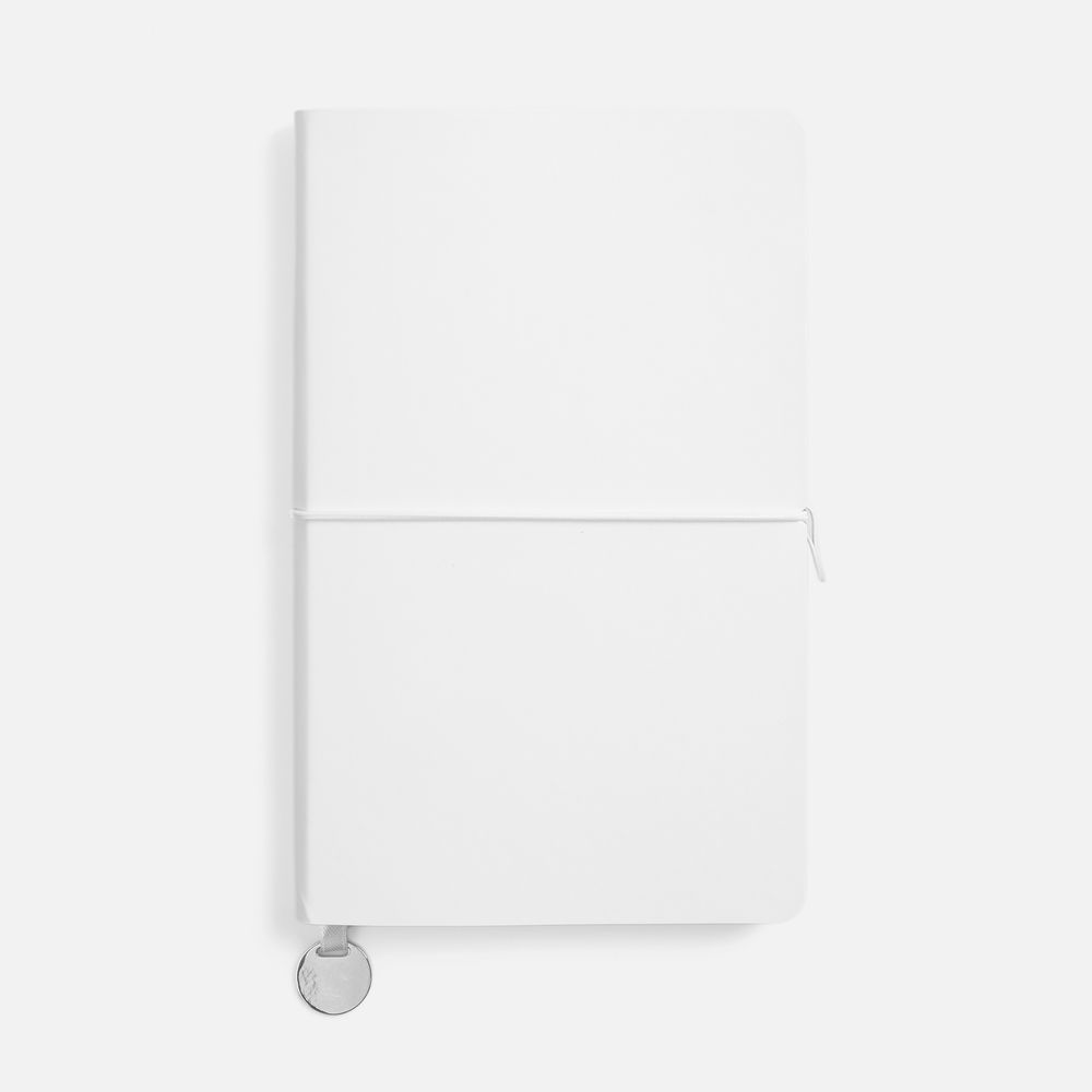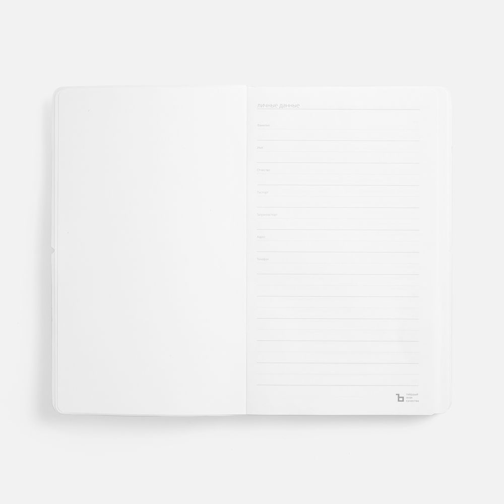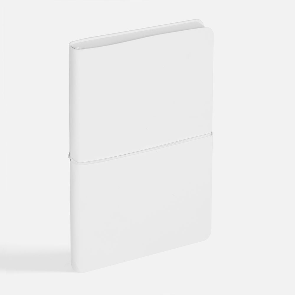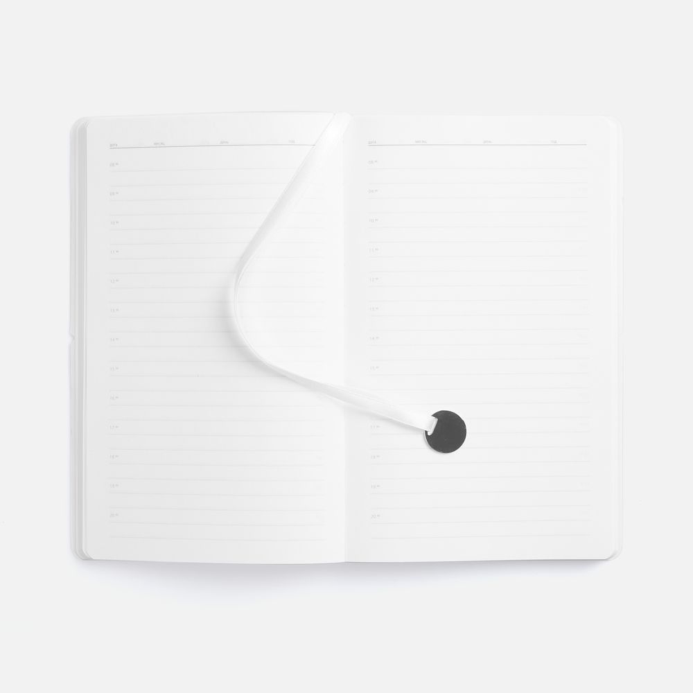 Ежедневник с гибкой обложкой, выполнен из материала Waltz, белый BB, дополнен ляссе в цвет обложки с металлическим шильдом.