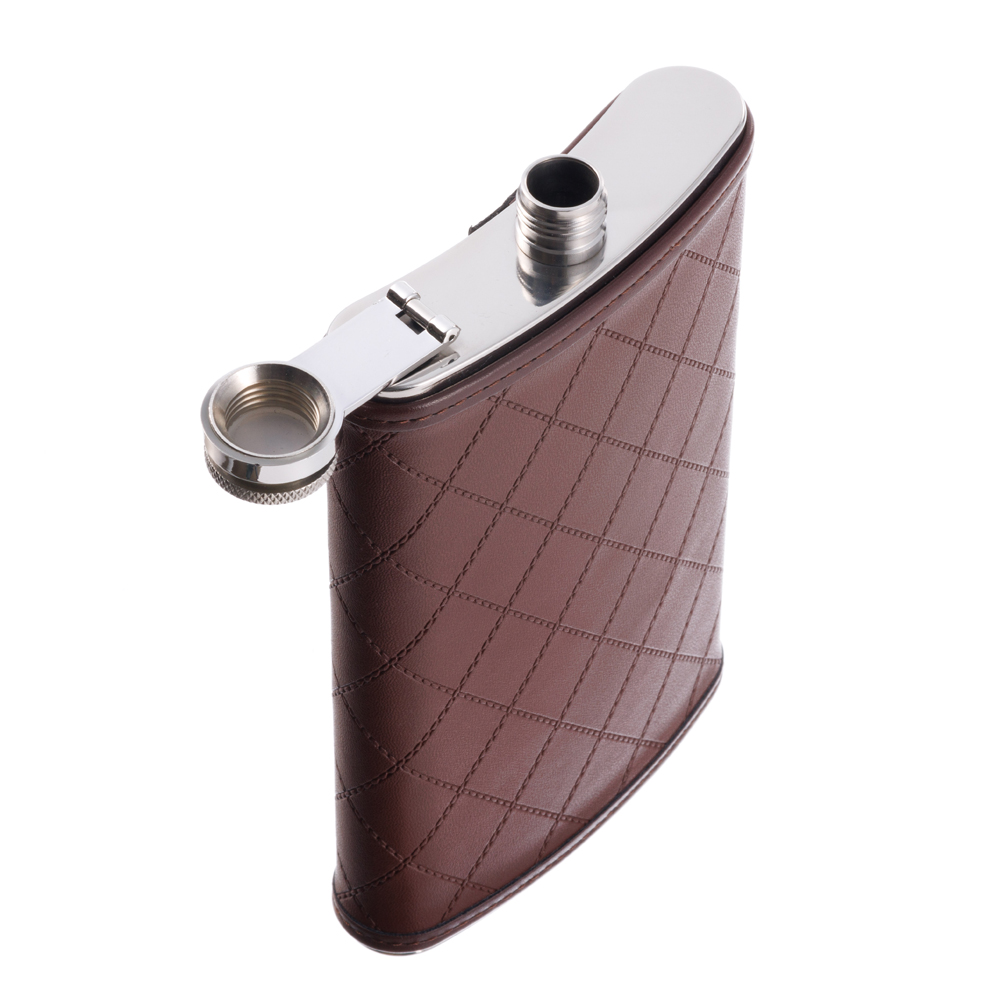 Фляга S.Quire 0,27 л, сталь+искусственная кожа, коричневая
