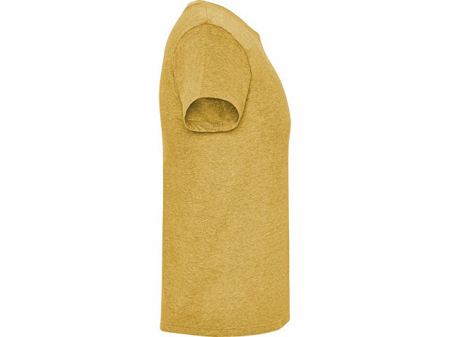 Футболка без боковых швов с коротким рукавом в меланжевом эффекте. Риб горловины 1х1 дополнительно укреплен двойной строчкой.