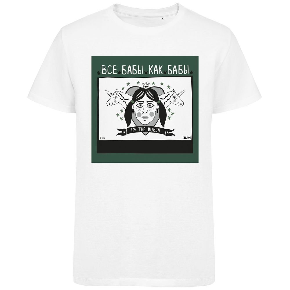 Дизайн принта: Яков Коган.Классическая кроеная футболка унисекс из гребенного хлопка. Благодаря тонким и длинным волокнам хлопка ткань футболки отличается гладкостью, ровностью и прочностью, отлично сохраняет форму, не деформируются и не выцветает при стирке. Горловина выполнена резинкой 1x1. Слегка приталенный силуэт.