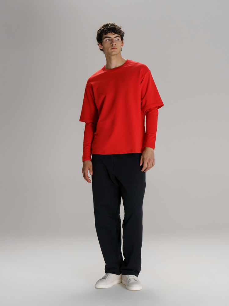Футболка оверсайз в трендовом исполнении double sleeve (с двойным рукавом) — отличный вариант для создания повседневного образа. Легкая дышащая хлопковая ткань с гладкой трикотажной фактурой приятна к телу, а расслабленный оверсайз силуэт делает футболку Kosmos идеальной для любых жизненных маневров.
