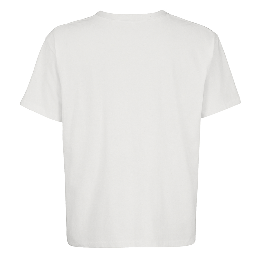 Футболка оверсайз унисекс с круглым вырезом, без боковых швов, высокой плотности. Выполнена из смеси переработанного хлопка (50%) и обычного хлопка (50%).