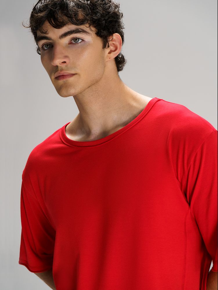 Футболка унисекс свободной посадки Vozduh создана для тех, кто следит за трендами и ценит комфорт. Необработанные края рукавов и низа изделия добавляют ему оригинальности и легкой небрежности, а боковые вставки создают притягательный летящий силуэт.