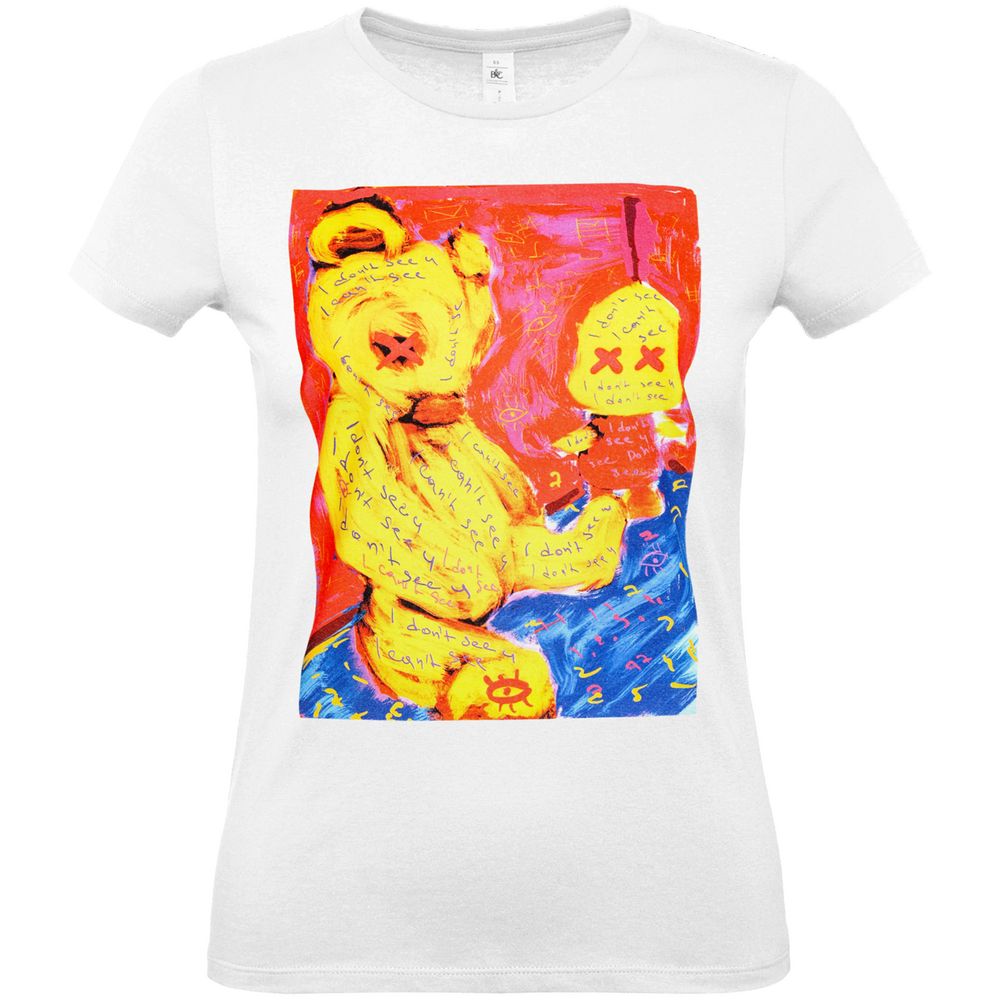 I Don't See You — это фантазия современной художницы Натальи Цилевич на тему сложных и запутанных взаимоотношений. Работы Натальи — это всегда живой эксперимент с чем-то неоднозначным, пугающим, провокационным и в то же самое время прежде небывалым и оттого безумно интересным.Кроеная футболка приталенного силуэта с круглым воротом.