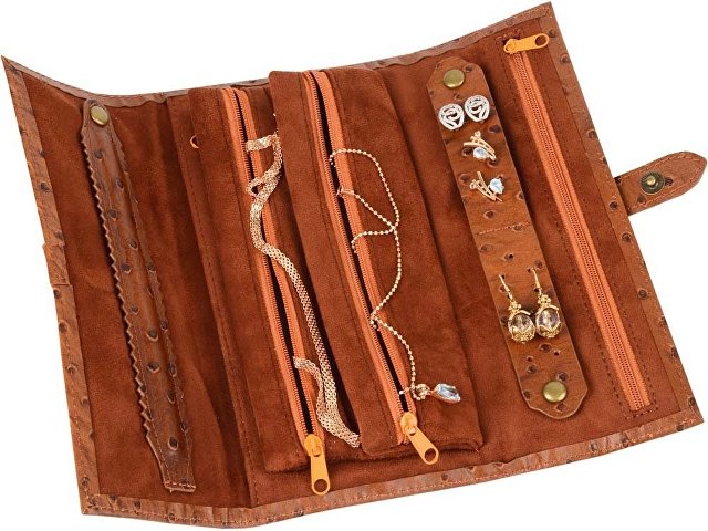 Стильный и удобный футляр из натуральной кожи для драгоценностей поможет прочно закрепить ювелирные изделия и бережно их сохранить даже во время перевозки. Удобно брать с собой в путешествие.
