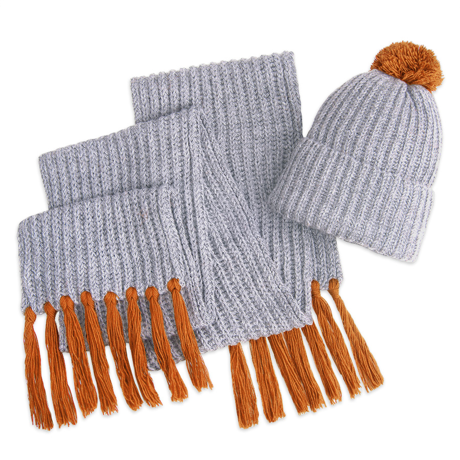 Мягкий, пушистый и уютный комплект из шарфа и шапки поможет согреться вам в холодное время года. Светло-серый цвет нейтрален и очень комфортен в носке. Благородый серый ассоциируется с компромиссом, спокойствием и стабильностью. Почувствуйте магическое влияние серого цвета в сочетании с яркой отделкой!Цвет помпона и кисточек близкий к Pantone 282C