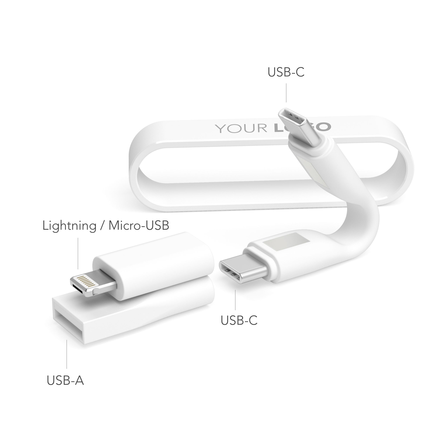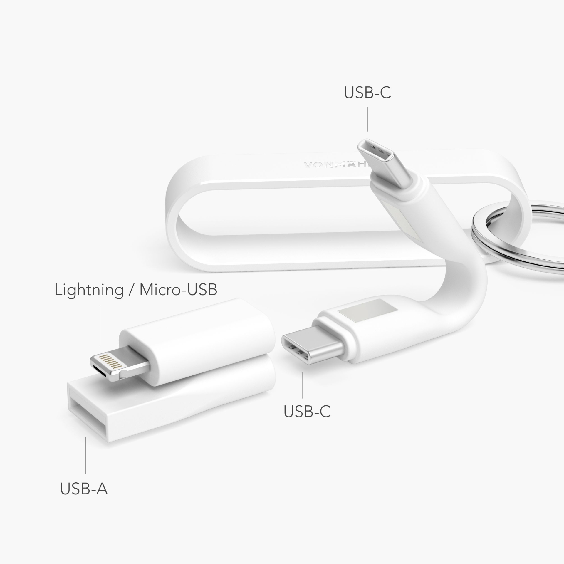 Универсальный кабель белого цвета High Six Lite создан для зарядки и передачи данных. Благодаря уникальному дизайну кабель убирается в пластиковый чехол на брелоке и всегда будет под рукой. Основной кабель USB-C/USB-C надежно закреплен магнитами, при этом его легко снять с брелока для удобного использования. На этом кабеле закреплены 2 переходника USB-C/USB-A и USB-C/Lightning+Micro-USB, поэтому с его помощью вы сможете зарядить любой гаджет. Скорость зарядки — до 60 Вт (3 А). Скорость передачи данных — 480 Мбит/с.