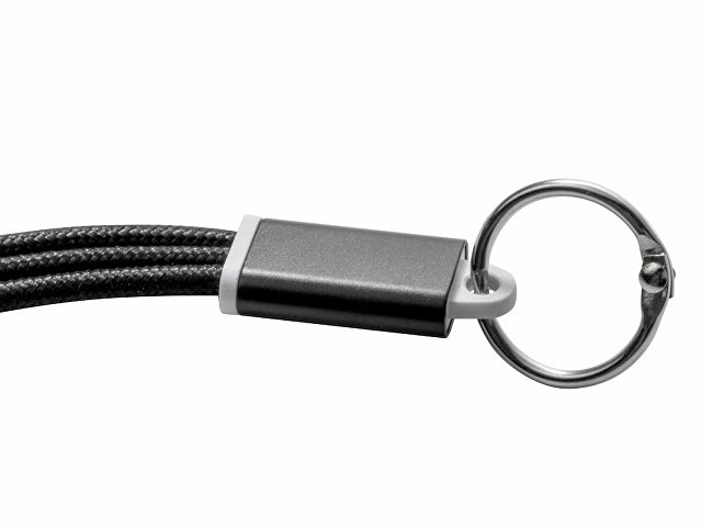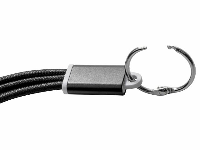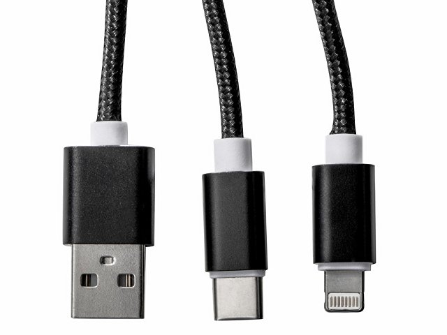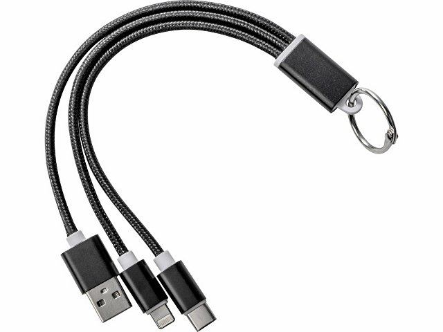 Кабель для зарядки Tres 3-в-1 с брелоком, коннекторами 1 type с, 1 USB type A и двойным совместимым коннектором 2-в-1 для устройств с ОС Apple® iOS и Android. В комплект входит брелок. Для зарядки устройств Apple подключайте кабель стороной без контактов; для зарядки устройств с ОС Android подключайте кабель стороной с контактами. Алюминий. Гравировка (оптоволоконный лазер) (Без чернения) на данный товар осуществляется бесплатно. Оплачивается только настройка оборудования в размере 1100 рублей на весь тираж.