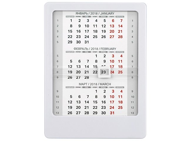 Настольный календарь на 2020 год выполнен из качественного пластика и имеет возможность менять календарную сетку на квартал. На пластиковый корпус прекрасно наносится логотип и символика компании. Цвета в ассортименте. Тампопечать (1 цвет (белые изделия)) на данный товар осуществляется бесплатно. Оплачивается только настройка оборудования в размере 4500 рублей на весь тираж.