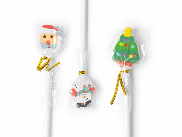 Белый круглый деревянный карандаш с ластиком доступен в трех рождественских вариантах: елка, Санта и снеговик.