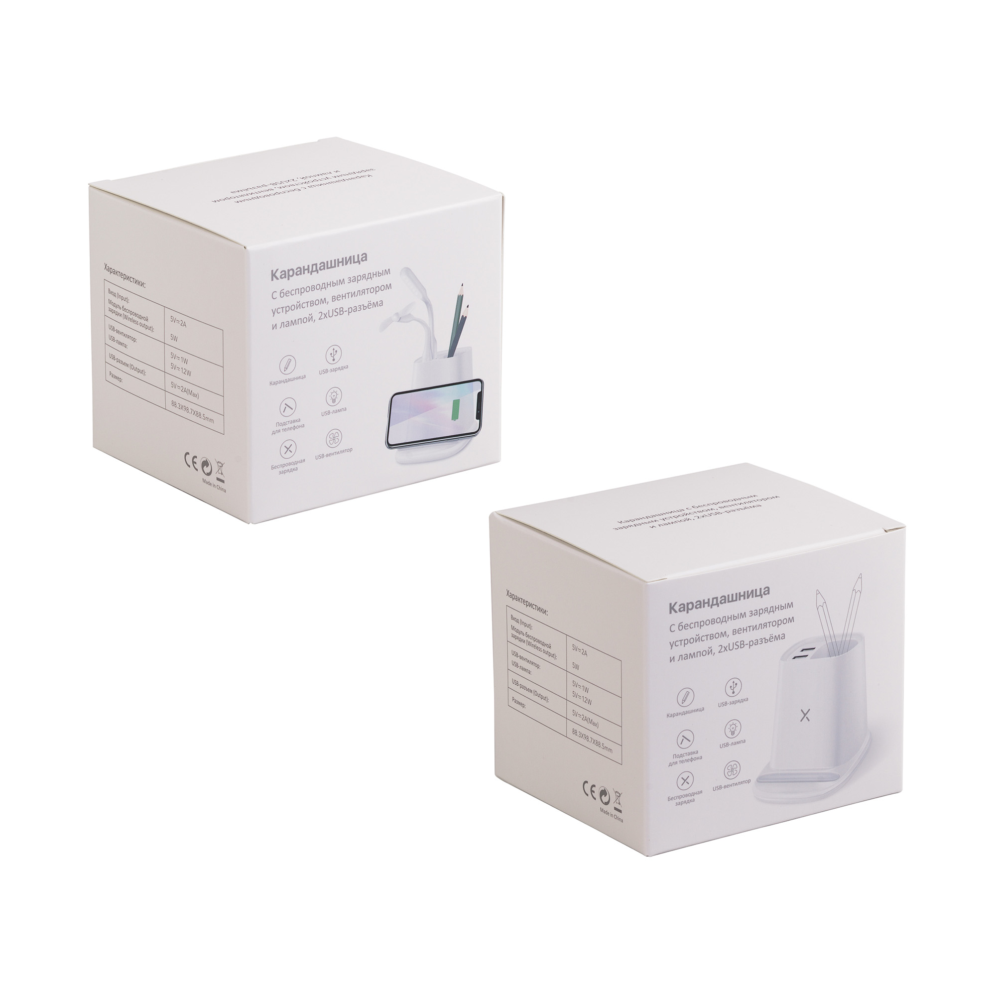 Карандашница "Smart Stand" с беспроводным зарядным устройством, вентилятором и лампой (2USB разъёма)
