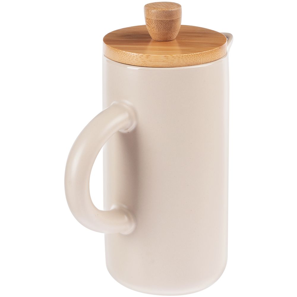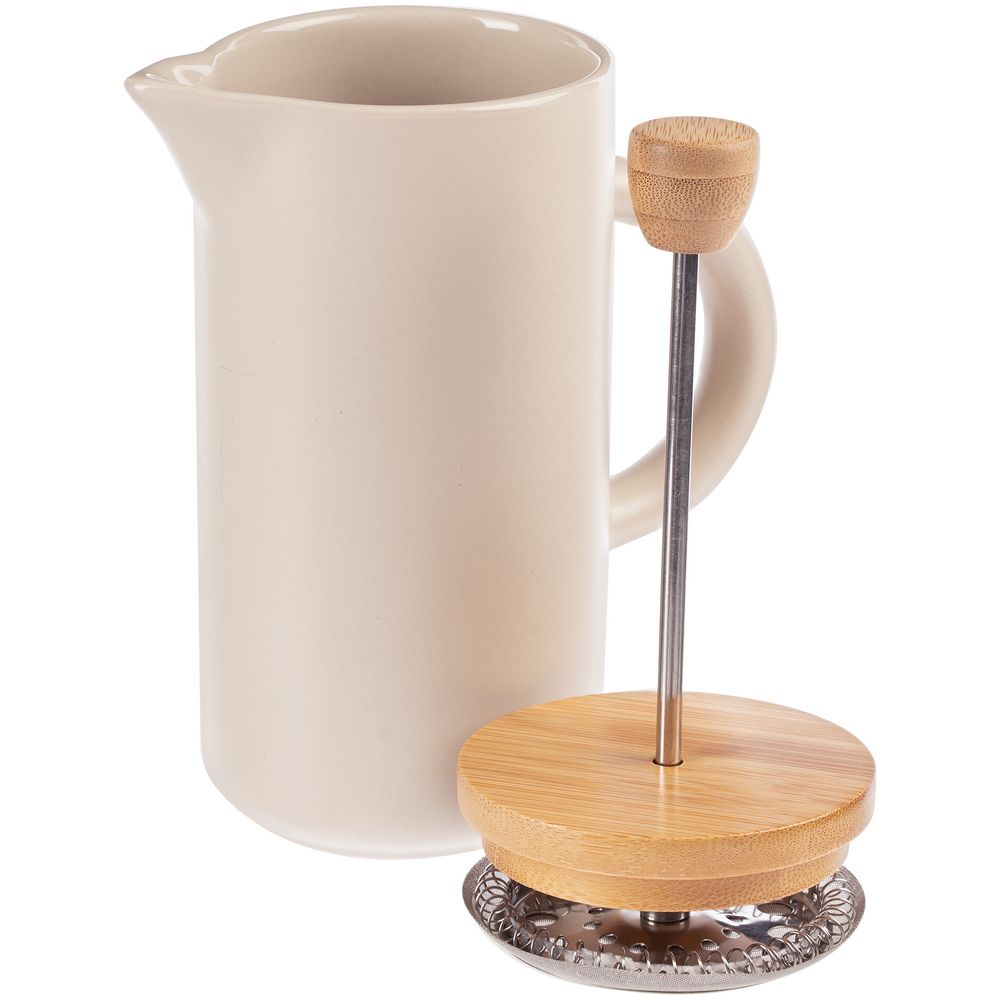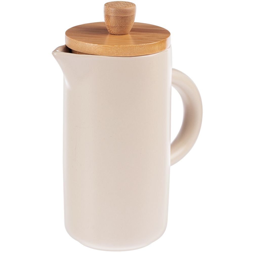 Френч-пресс Keramikk выполнен из керамики, благодаря чему он хорошо сохраняет температуру напитка, не обжигает руки и прост в уходе. Контраст бамбуковой крышки и керамики выглядит действительно интересно и необычно.Емкость 350 мл.