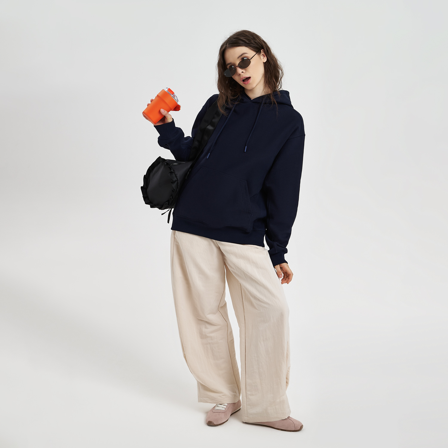 ADVENTURE — худи для тех, кто выбирает свободу движения и уверенность в каждом шаге. Умеренно свободный силуэт и слегка заниженная линия плеча создают расслабленный, но собранный образ. Объёмный капюшон с регулировкой на шнурке защищает от ветра и добавляет ощущение уюта. Эластичные боковые вставки из риба — не только для комфорта в движении, но и как смелый дизайнерский акцент. Манжеты и нижний край выполнены из трикотажной резинки в рубчик. Классический карман-кенгуру — функциональный и выразительный элемент.
