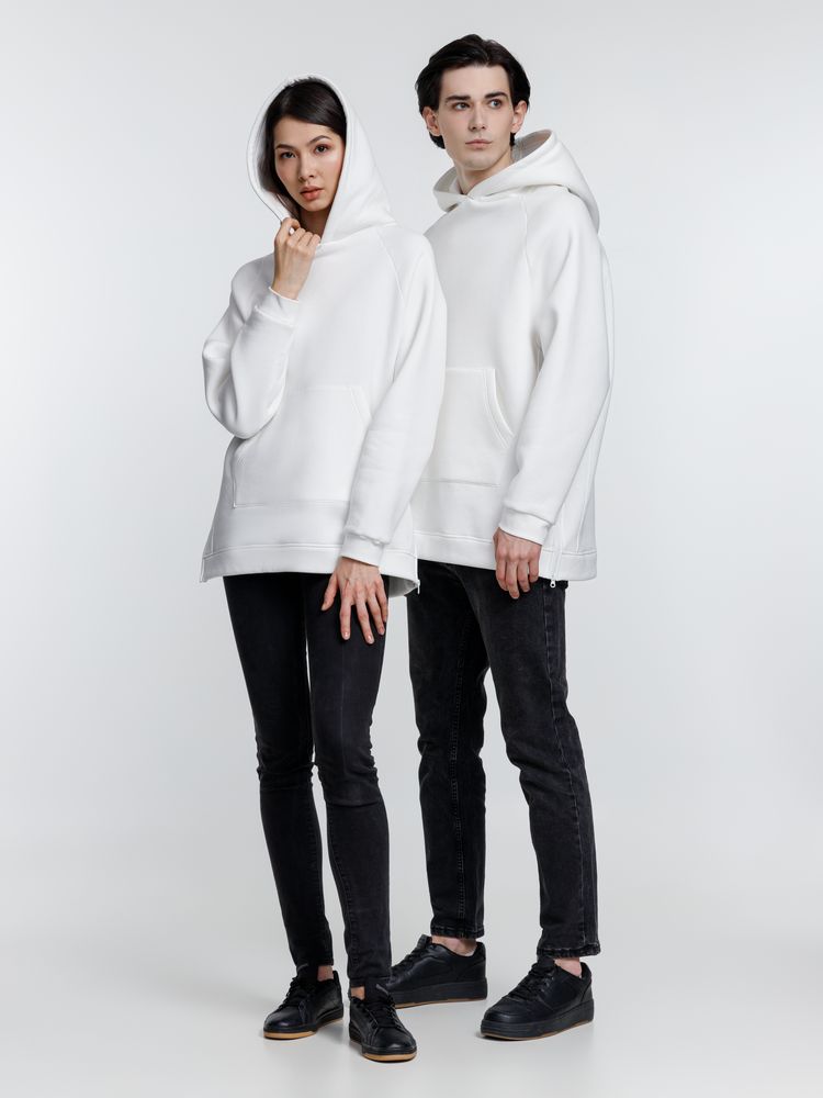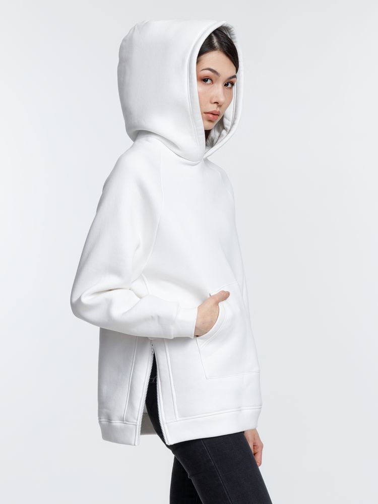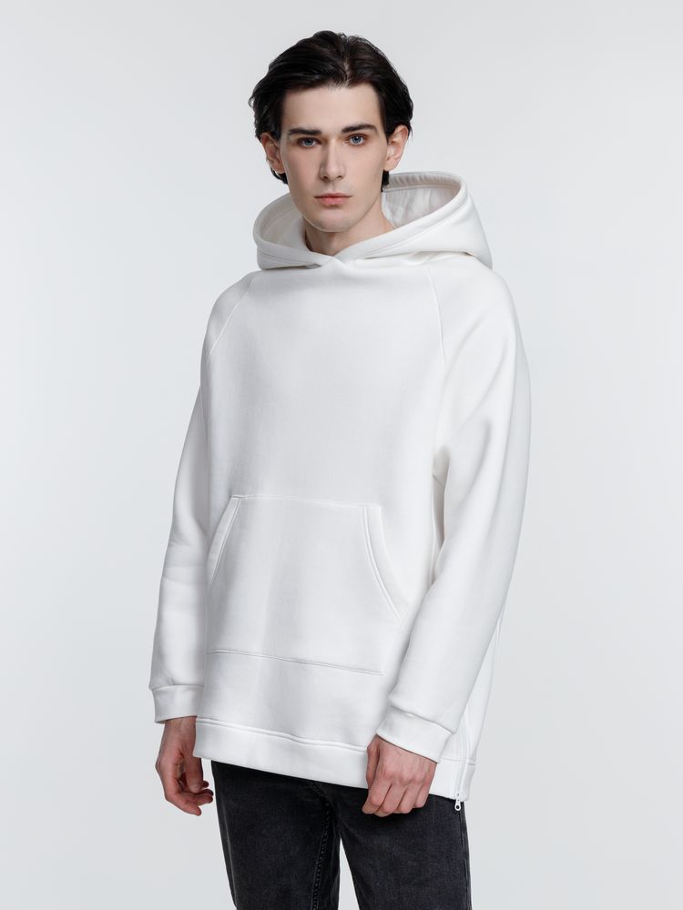 Худи унисекс удлиненного силуэта с молниями в боковых швах.