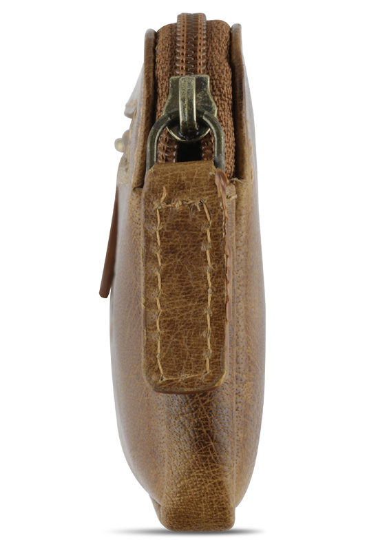 Функциональная организация: основное отделение на молнии, 2 кольца для ключей на кожаных ремешках, задний карман на молнии.