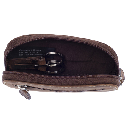 • Ключница оснащена двумя кожаными креплениями, на каждой из которых прикреплено прочное кольцо для ключа. Снаружи ключницы также есть дополнительное отделение на молнии для хранения монет.