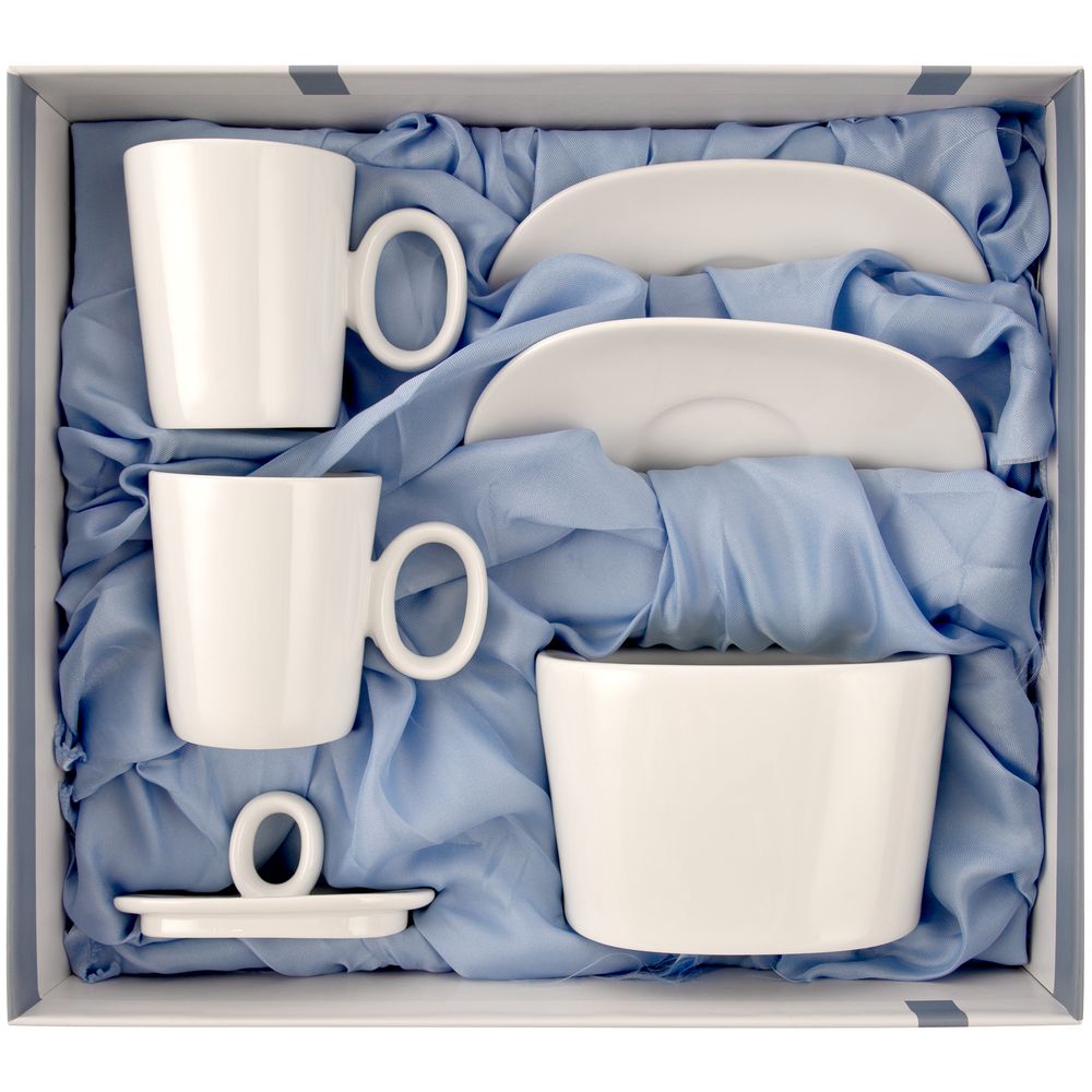Размер ШВГ: | чашка: диаметр 6 см, ширина с ручкой 9 см, высота 6,9 см; блюдце 13,9х11х1,6 см; сахарница 8,5х10,7х9,5 см; упаковка 26,3х23,5х10 см |