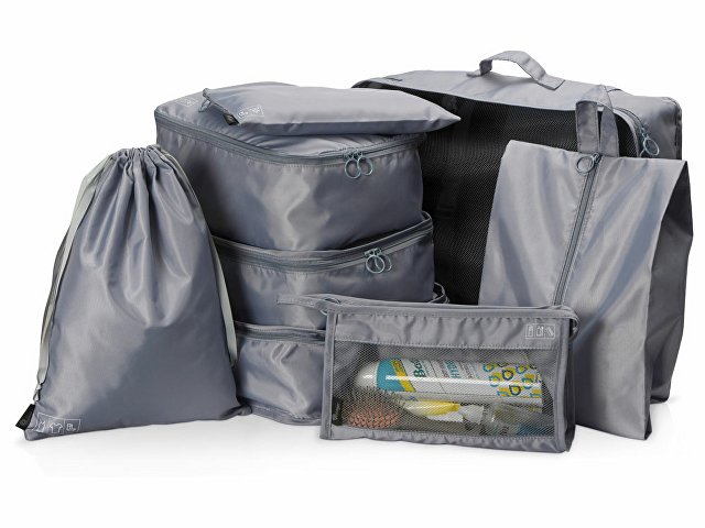 Набор чехлов для одежды от бренда Voyager, выполненный из прочного качественного полиэстера 290D, организует ваши вещи в чемодане во время путешествия и поможет разместить их комфортно в шкафу. В отличие от пакетов чехлы многоразовые, что наверняка понравится защитникам природы, их легко стирать, сушить и хранить. Набор состоит из восьми чехлов, упакованных в один большой с сетчатой стенкой. Этот чехол оборудован ручкой для переноски и кнопками на задней стенке, которые позволяют компактно сложить изделие вдвое в зафиксированном положении для хранения.