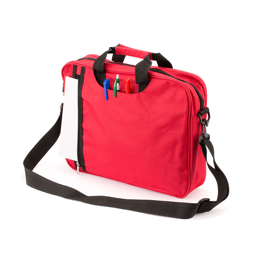 Сумка для документов из мягкого полиэстера 600D с застежкой-молнией и оригинальным передним карманом по вертикали. Отделение под ручками, усиленные ручки для переноски подходящего цвета и регулируемый плечевой ремень с карабинами.