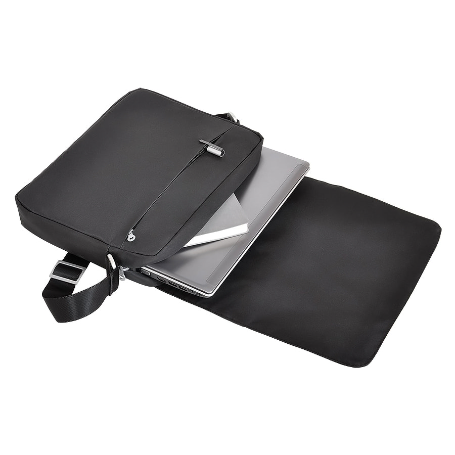 Деловая сумка из микрофибры (водо и пылеотталкивающая ткань). Подкладочная ткань - полиестер. Внутри: отделение для ноутбука планшета с мягким наполнителем, отделение для бумаг, карман на молнии, 2 кармана для мелочей. Наружный карман на молнии с отделениями для ручек, документов и телефона. Карман на клапанет с молнией. Идеальна для деловых поездок. Регулирующийся плечевой ремень с мягкой накладкой. Шильд для гравировки 4,9*1,5 см.