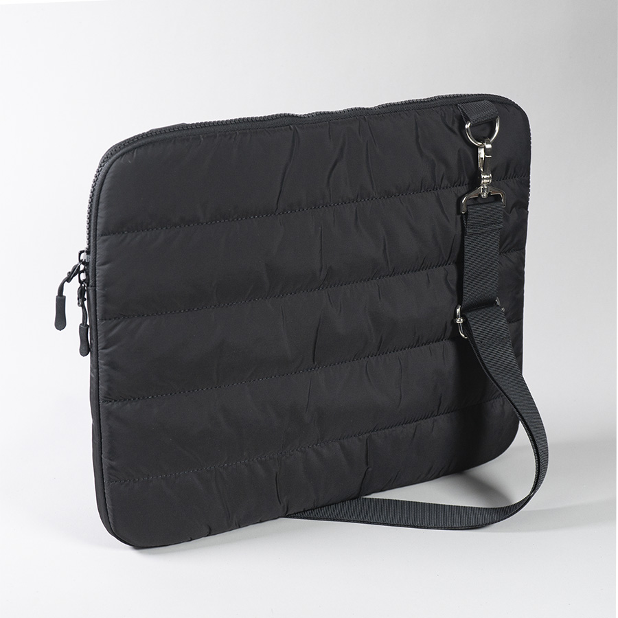 Сумка для ноутбука из матовой мягкой ткани с горизонтальной простежкой. Съемный регулируемый плечевой ремень. Одно основное отделение с карманом для ноутбука застёгивается при помощи пластиковой тракторной молнии.Стенки с уплотнителем защитят содержимое от повреждения. Легкая и функциональная сумка идеально подходит для офиса и повседневной жизни.