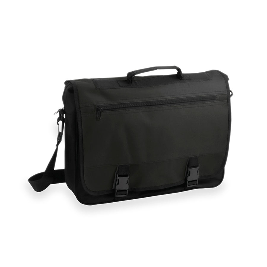 Сумка для документов из полиэстера 600D с клапаном на липучке и элегантной черной передней полосой. С усиленными ручками для переноски и регулируемым плечевым ремнем. Внутренние карманы для ручек и чехол для смартфона из ПВХ с тактильной функцией.