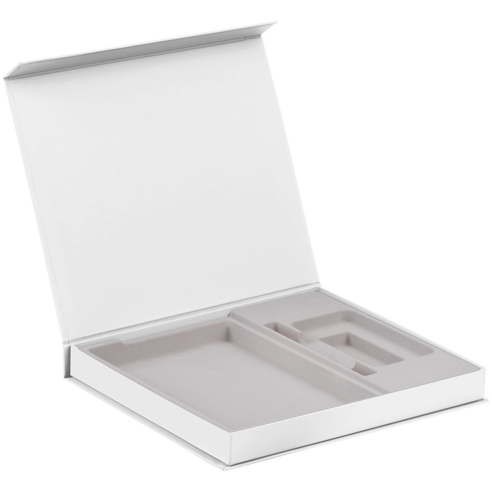 Подарочная коробка из переплетного картона, кашированного дизайнерской софт-тач бумагой Senzo, с крышкой на магните и съемным ложементом.