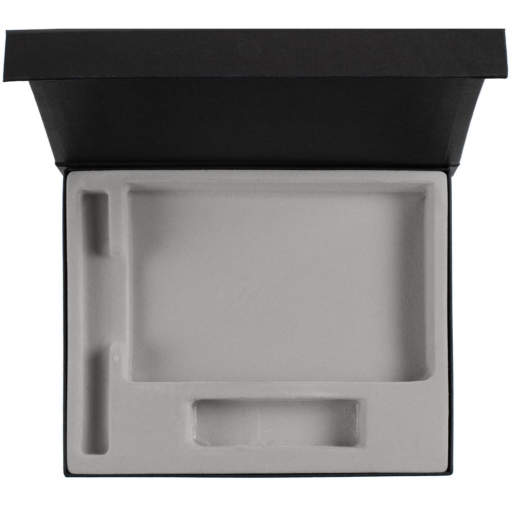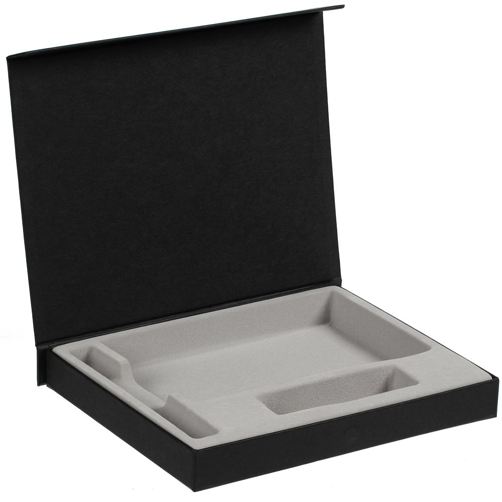 Коробка из переплетного картона, кашированного гладкой дизайнерской бумагой Efalin, с крышкой на магните и флокированным ложементом.